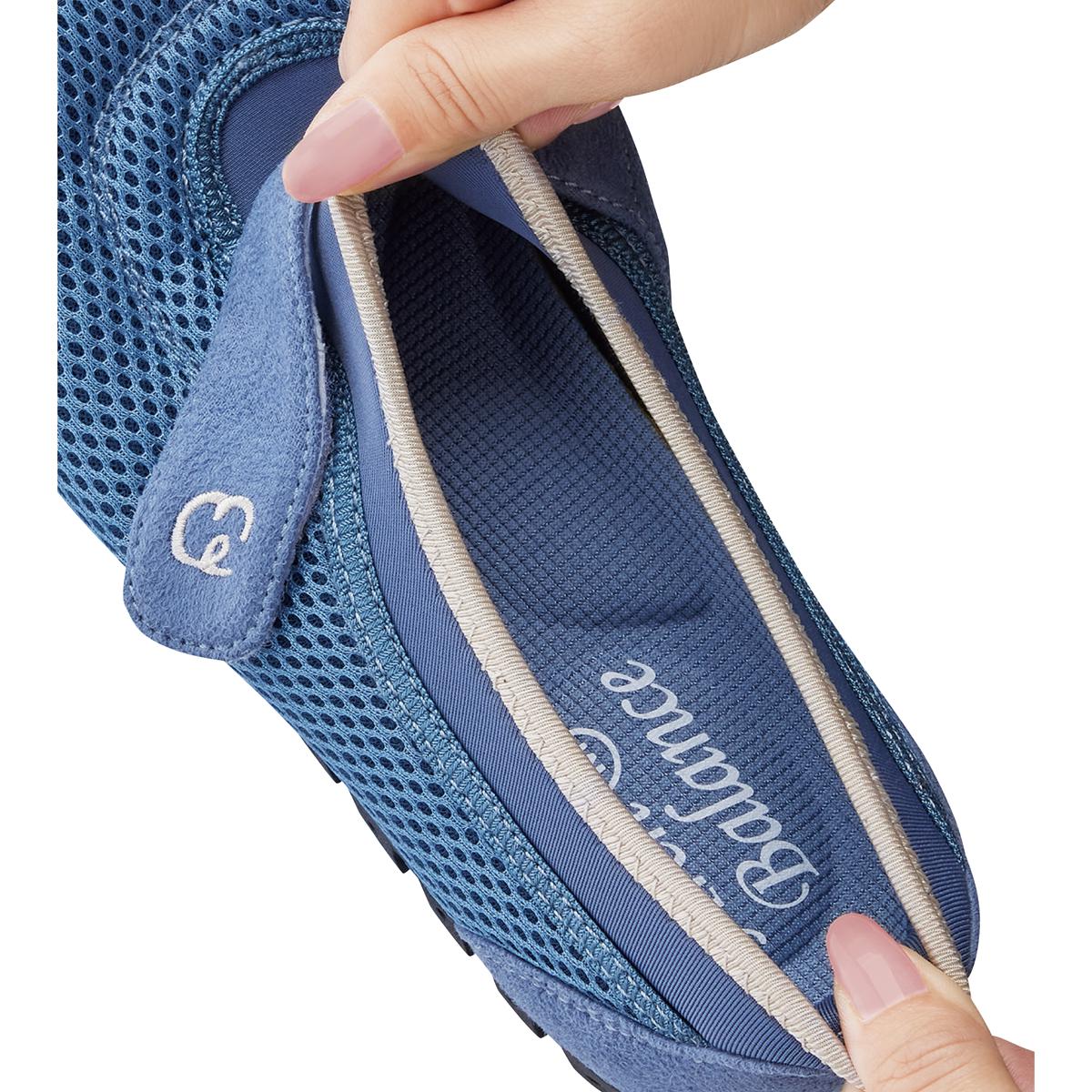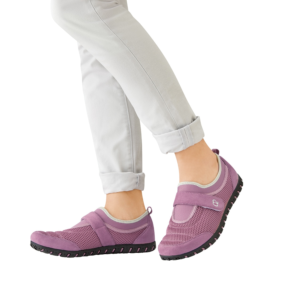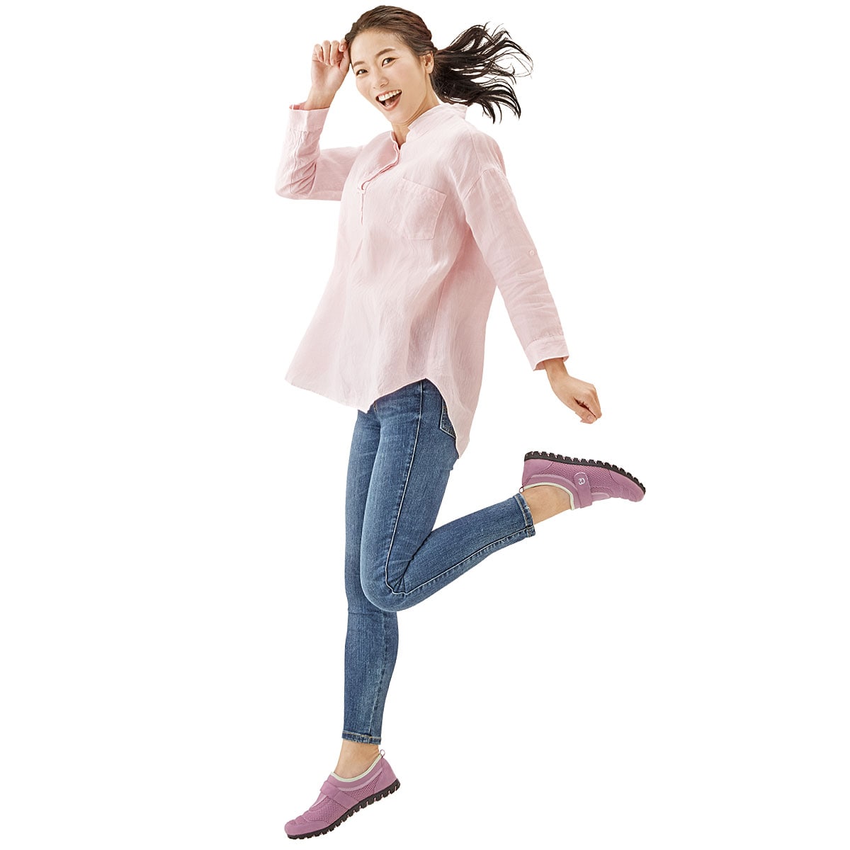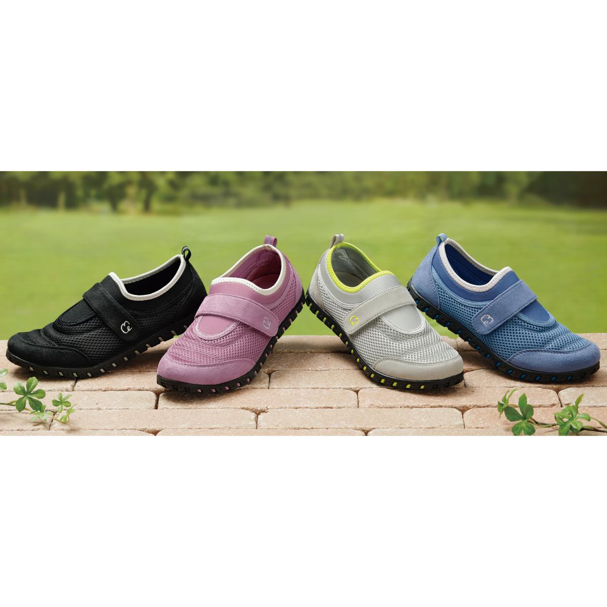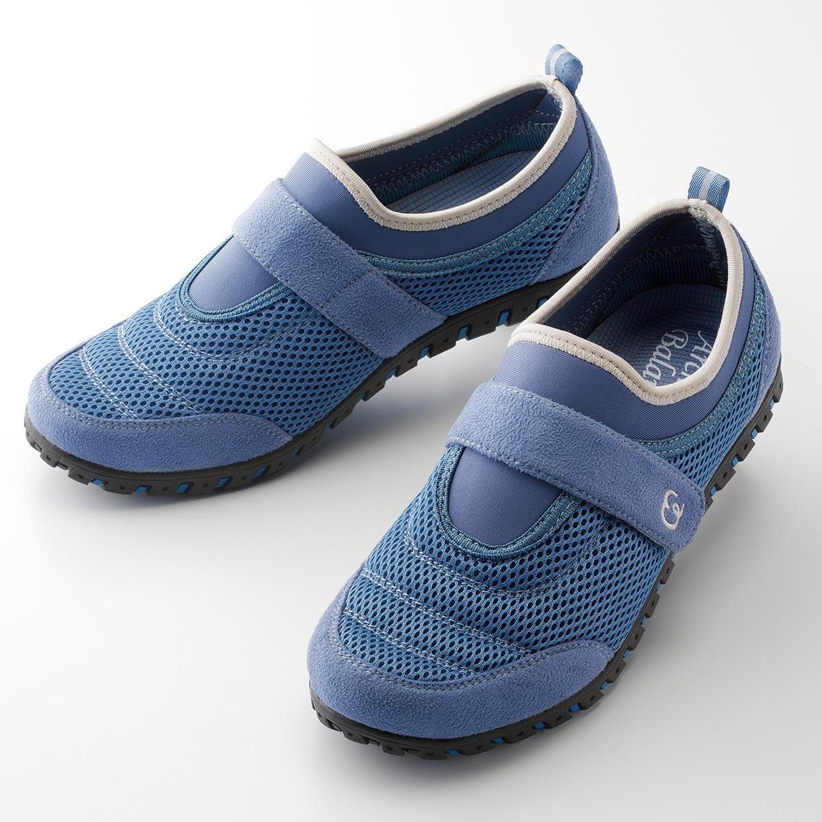 ーこだわりPOINTー医学博士監修のインソールは立体形状で疲れにくい。屈曲性のある靴底は足なじみがよく歩きやすい。面ファスナーのベルトでぴったり足を固定できます。ー素材特徴ー甲材は伸びる素材で履きやすく足にフィット。メッシュ生地でムレにくい。■素材/[生地]ポリエステル、ポリウレタン [底材]合成底 ■ヒール高/約2cm ■重量/約190g(Mサイズ片足) ■ワイズ4E相当▼強い摩擦や湿った状態で使用すると色落ちや他の物に色移りすることがありますので、淡色系の靴下は極力お避けください。●中国製※靴の試し履きは必ず室内でお願いします。一度ご使用になられた靴の交換・返品は承れません。※雨の日や水に濡れた路面・床面でご使用の場合には、スリップや転倒の危険がありますので、歩行の際には十分ご注意ください。