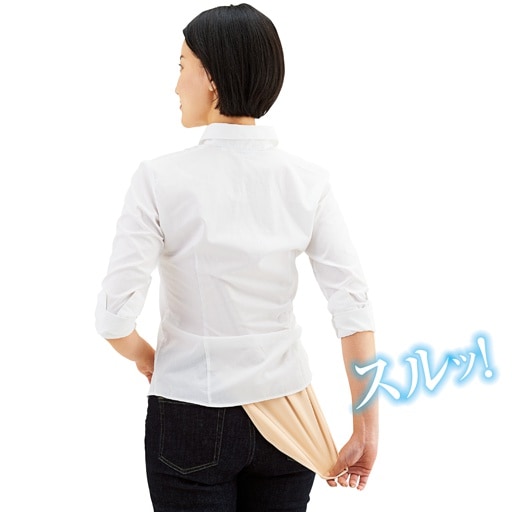 裾から、襟元から引き抜くだけ!背中の汗じみも、もう気にならない!使いやすいキャミソールタイプ。アウターにひびきにくく、透けにくい肌色ベージュ。ウォーキングやハイキング、ラッシュの電車通勤、日中のおでかけに!ーデザインー襟ぐり浅めで背中の汗も吸収。ウエスト周りがもたつかない短めの前身ごろ。