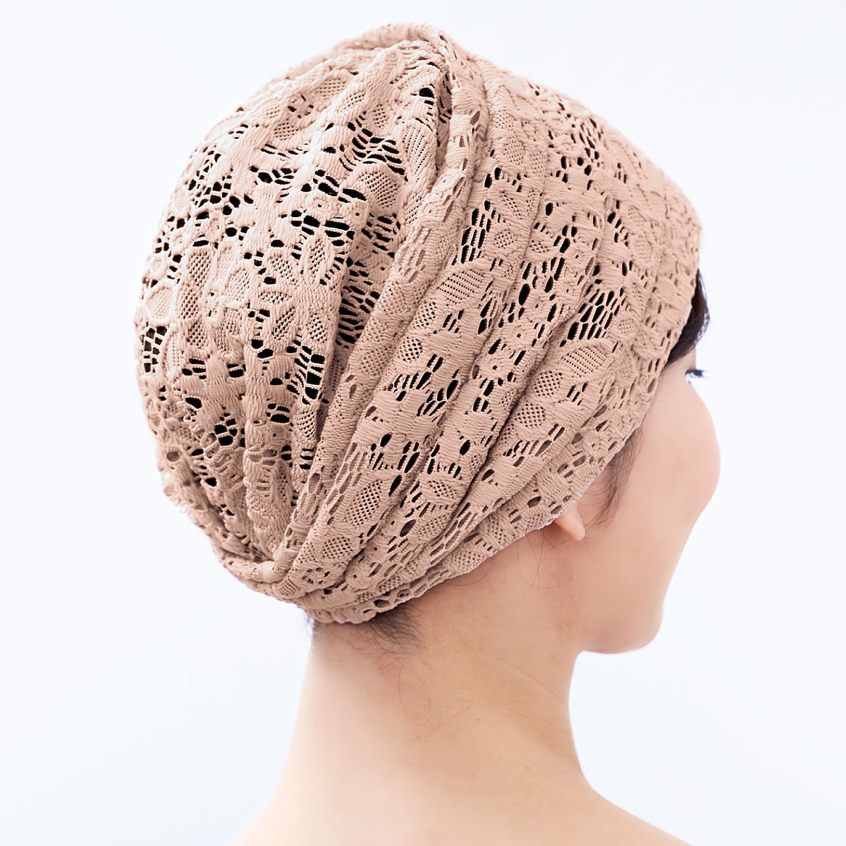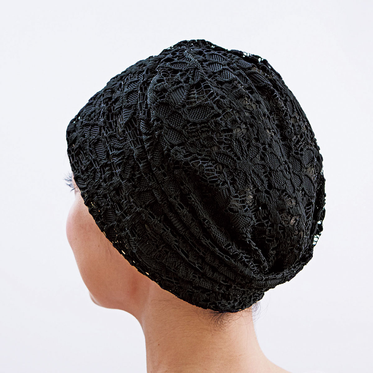 程よい透け感でムレにくい立体感のあるゴージャスなレースを使用したヘアキャップ。エレガントなヘアキャップで髪のお悩みを瞬時にカバーします。ーデザインーズレを防ぐすべりどめテープ付き。ー素材特徴ー編みたて、染色ともにレースの一大産地である福井県の生地を使用。日本の職人がひとつひとつ丁寧に縫製しています。