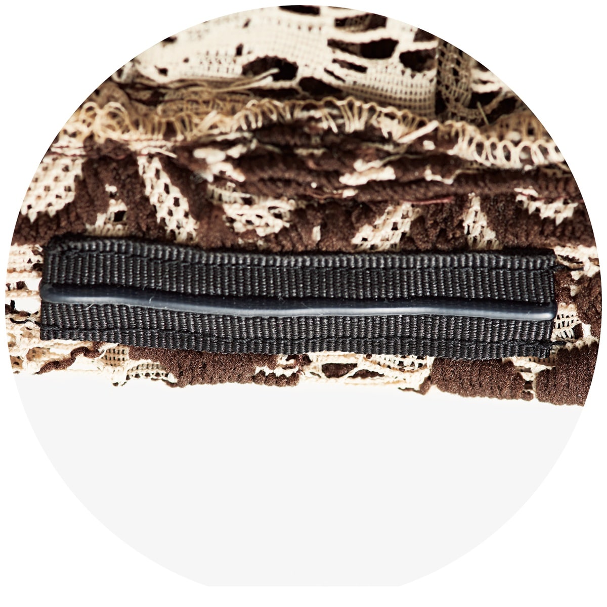 程よい透け感でムレにくい立体感のあるゴージャスなレースを使用
