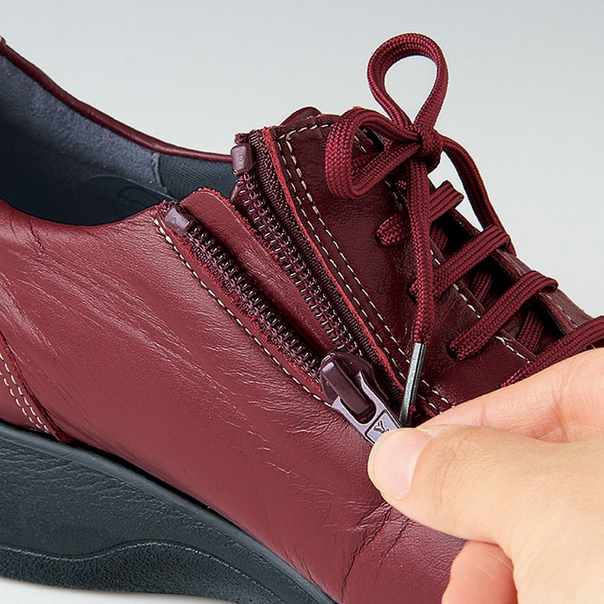 サイドファスナーで脱ぎはきラクラク!