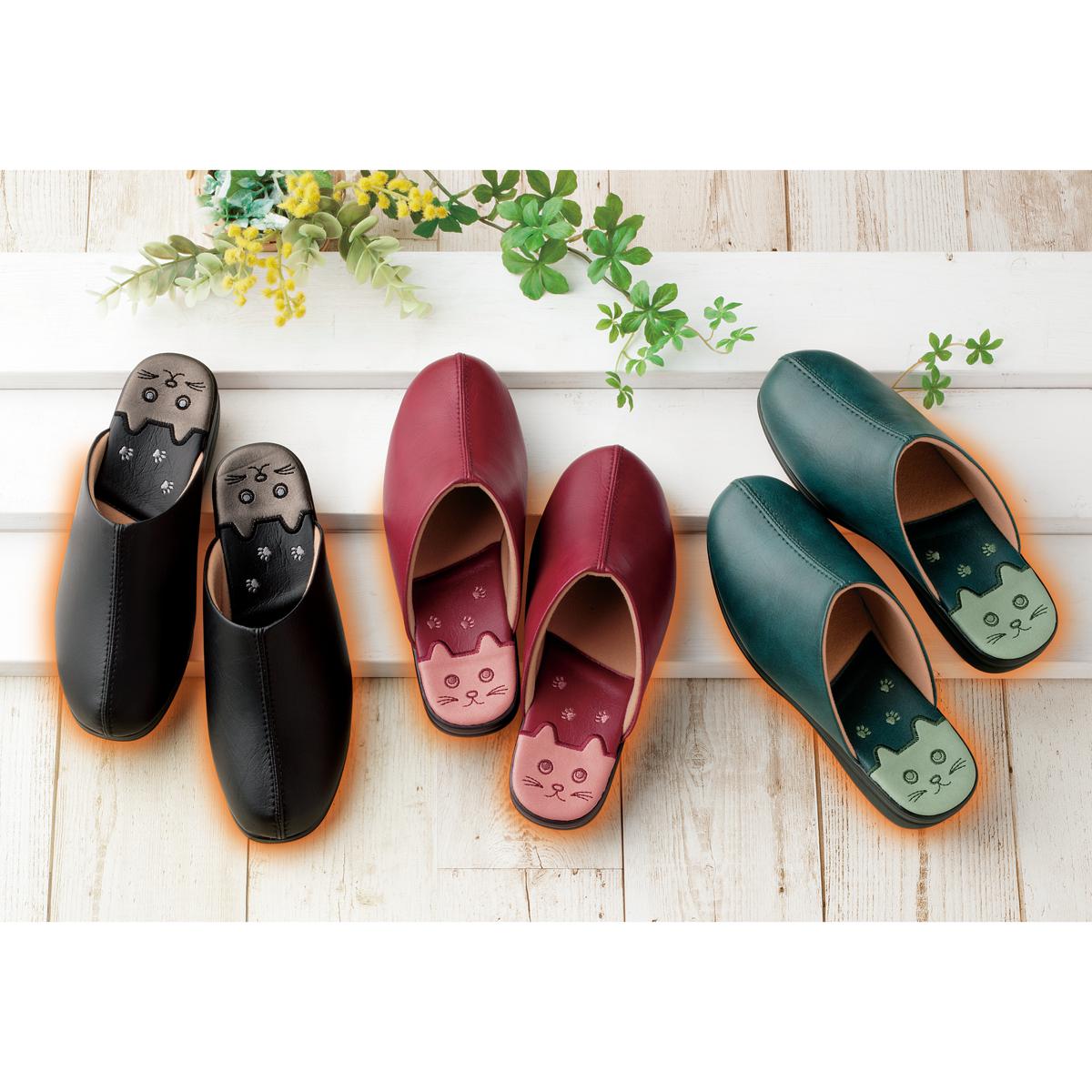 かわいいネコちゃんに癒される!履き心地がいい国産サンダル!-こだわりPOINT-熟練職人手作業によるジャストフィット加工。甲部には暖かく、足に優しい厚手クッション材入り。-素材特性-内側のは、足先までポッカポカの裏起毛素材を使用。