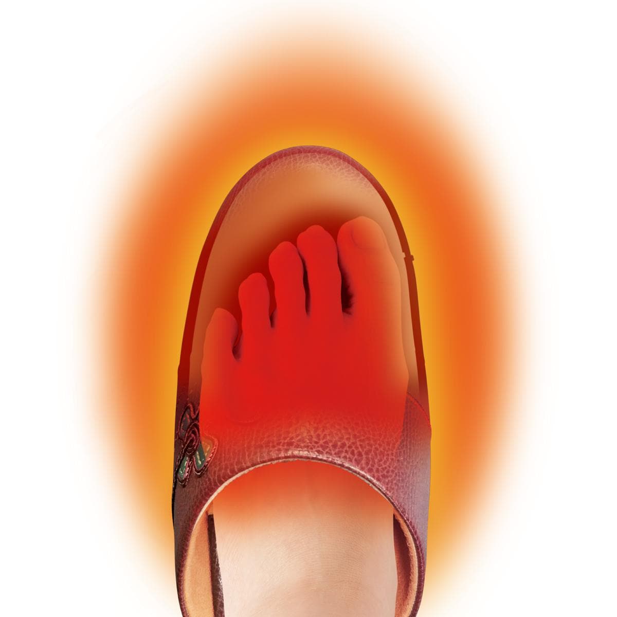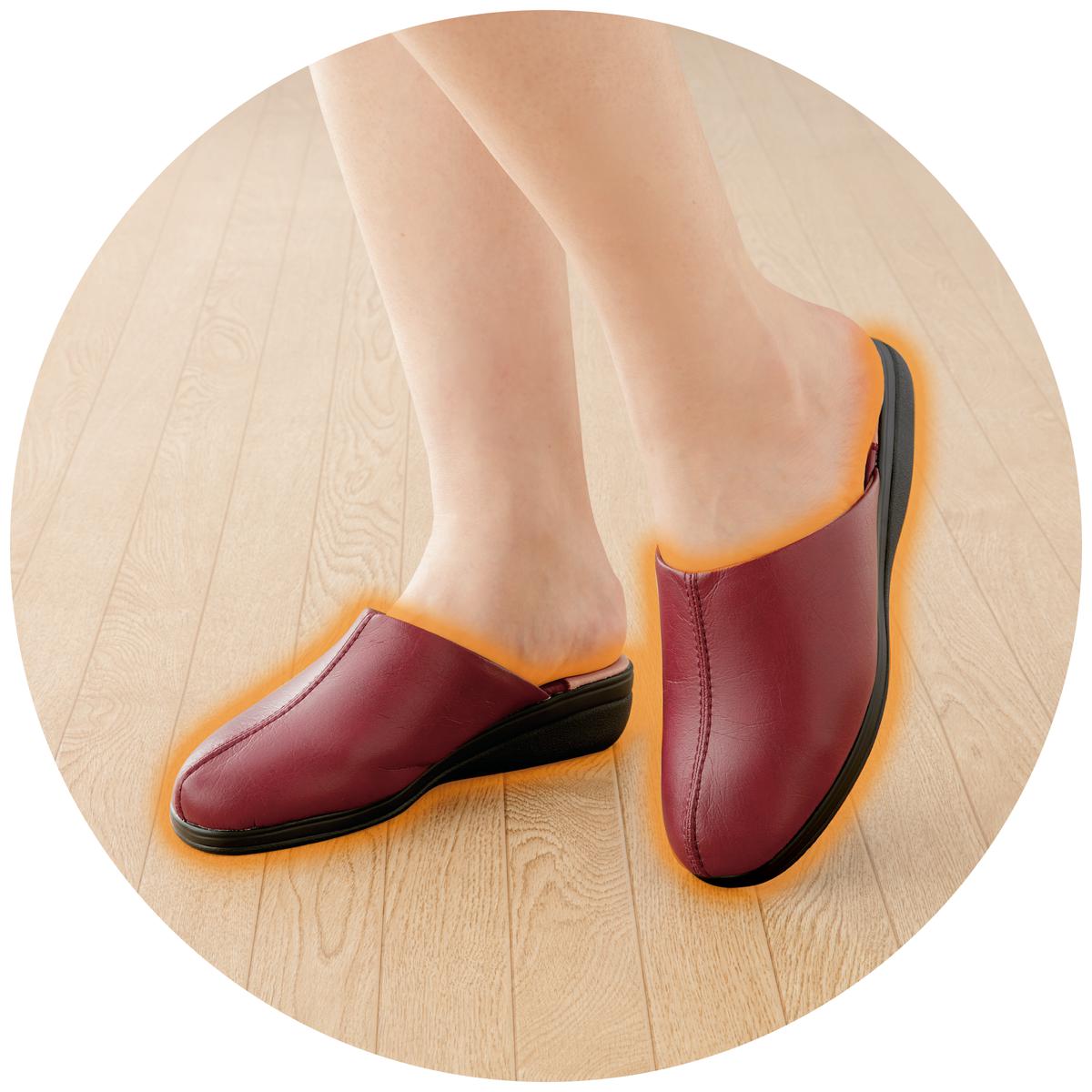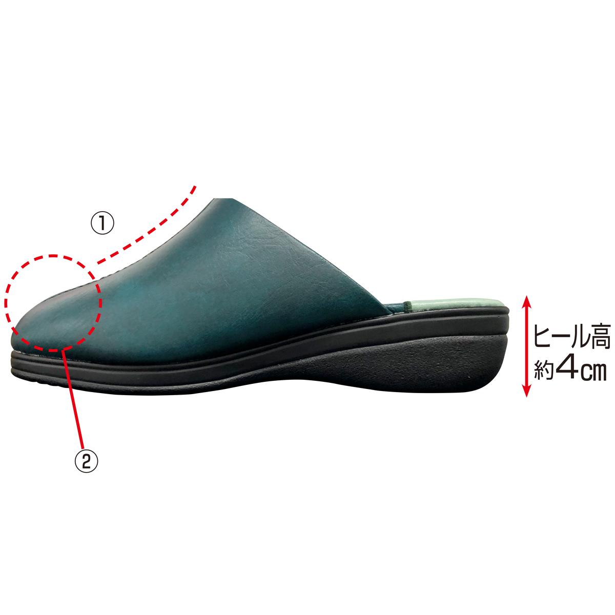 (1)熟練職人手作業によるジャストフィット加工(2)甲部…暖かく、外反母趾に優しい厚手クッション材入り