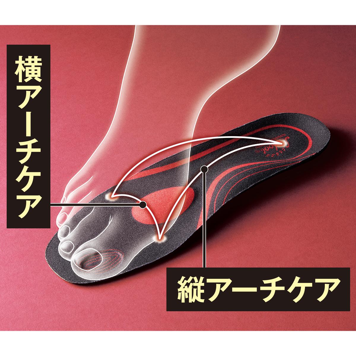 ー靴に入れて歩くことで筋肉活動量UPをサポートー腹直筋(下腹)…約3.7%UP大腿四頭筋(太もも)…約13%UP腓腹筋(ふくらはぎ)…約2%UP※ユニチカガーメンテック(株)調べ。結果には個人差があり、効果を保証するものではありません。本品未着用時と着用時の5分間歩行時の比較。30代女性モニター3名の平均値。■材質/[生地]ポリエステル [合成底]ポリウレタン ※水洗いOK●中国製