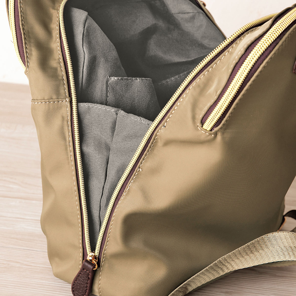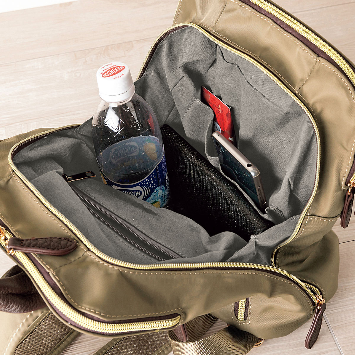 中央収納部は中身が落ちにくいサイドマチ付き