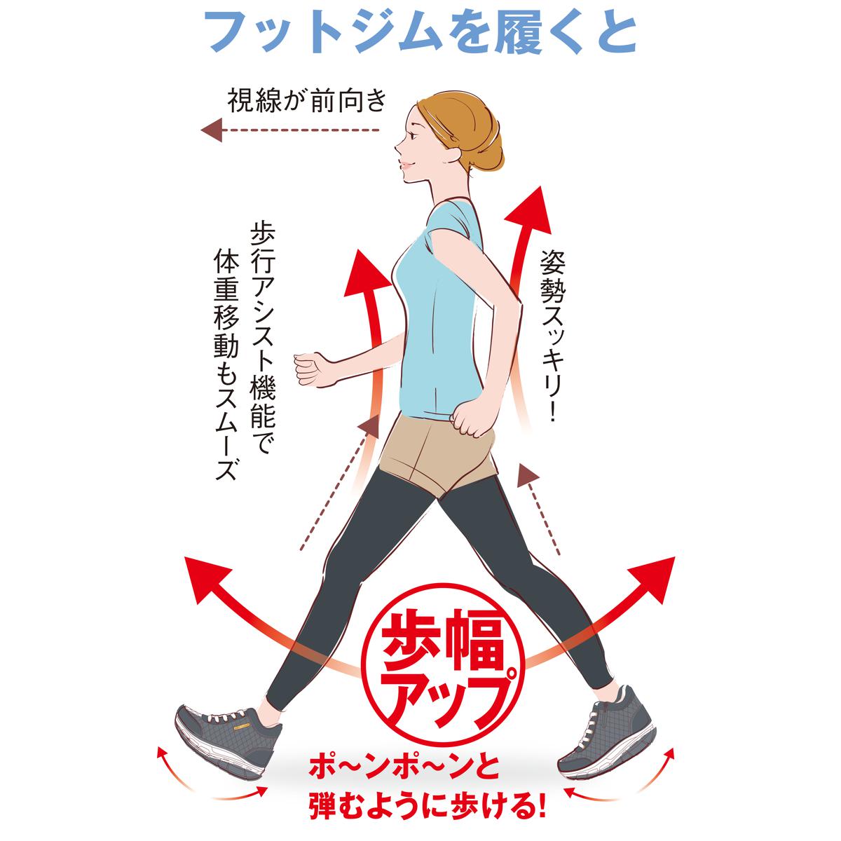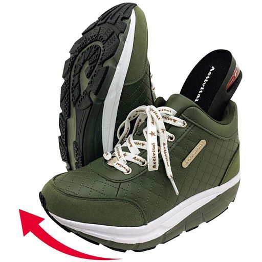 ラウンド形状の靴底が、かかとからつま先への重心移動をサポート。体重がかかるとアウトソール内部が沈み、衝撃を吸収するとともに、自然とバランストレーニングに。ーこだわりPOINTー1.衝撃を吸収分散しやすいクッションソール2.履いて歩いて筋活動量UPをサポート!3.内側ファスナーで脱ぎはきしやすくラク!履いて歩いて筋活動量UPをサポート!※メーカー調べ。結果には個人差があり、効果を保証するものではありません。本品と一般的なスニーカーを着用し、歩行時の比較。モニター10名の平均値。