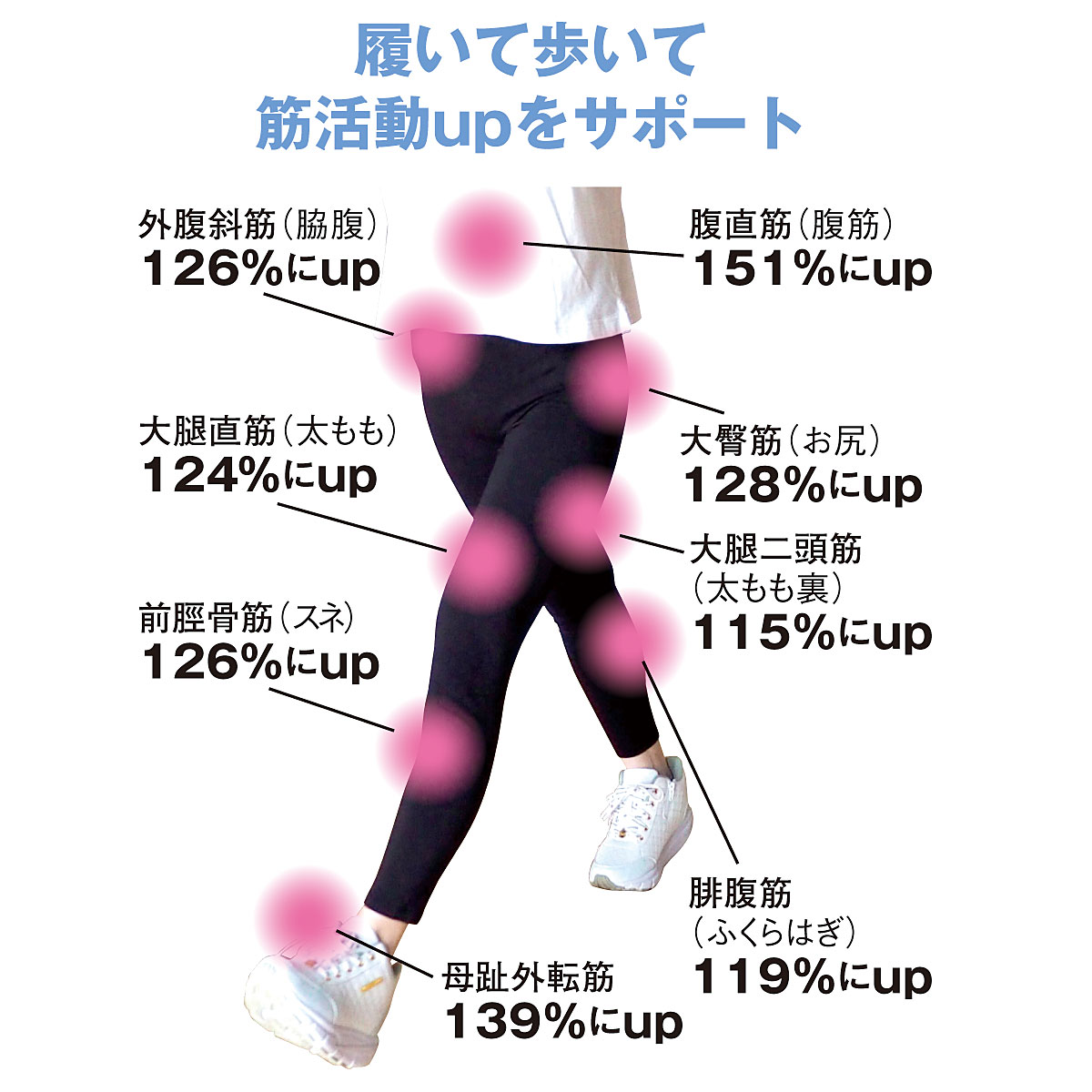 ※メーカー調べ。結果には個人差があり、効果を保証するものではありません。本品と一般的なスニーカーを着用し、歩行時の比較。モニター10名の平均値。※イメージ