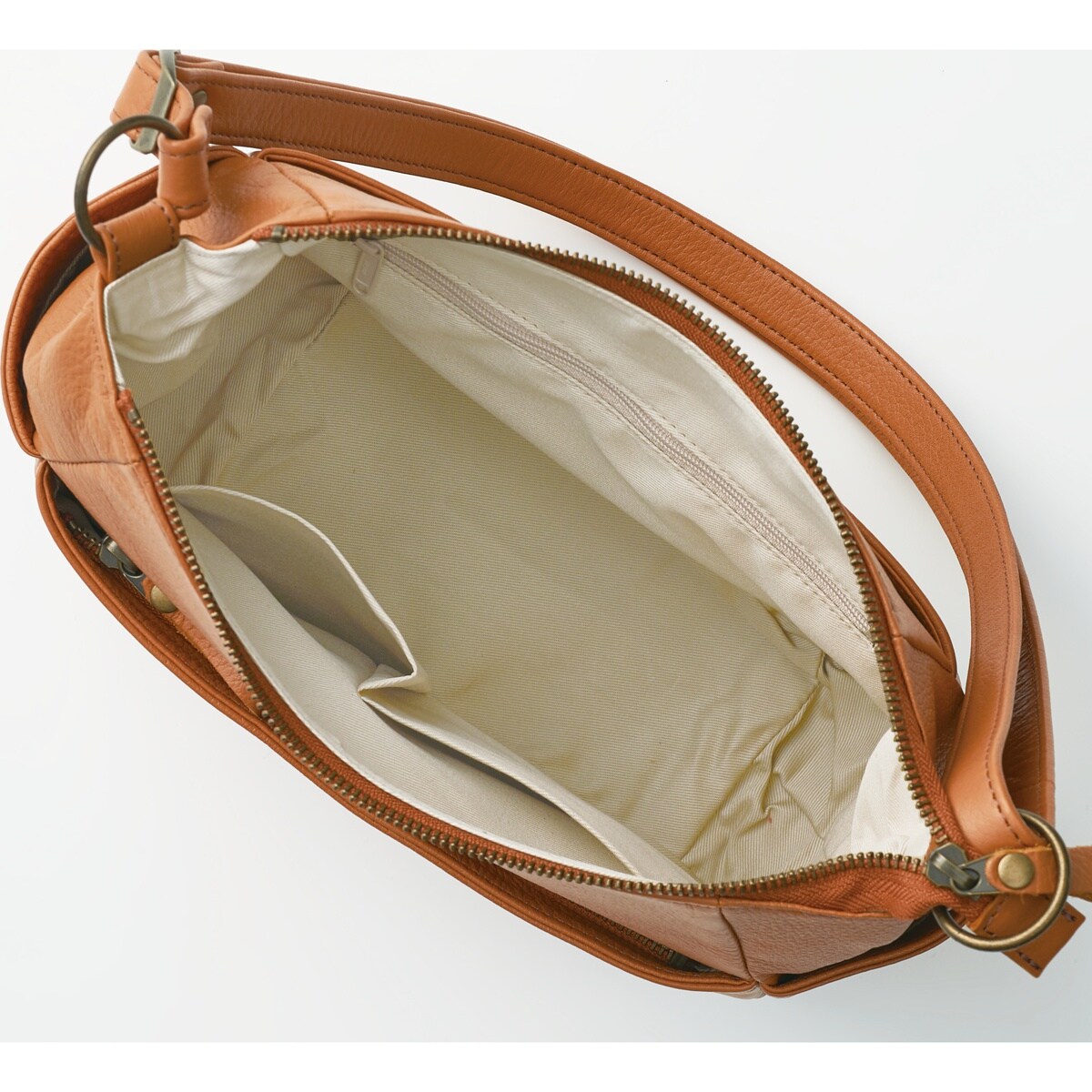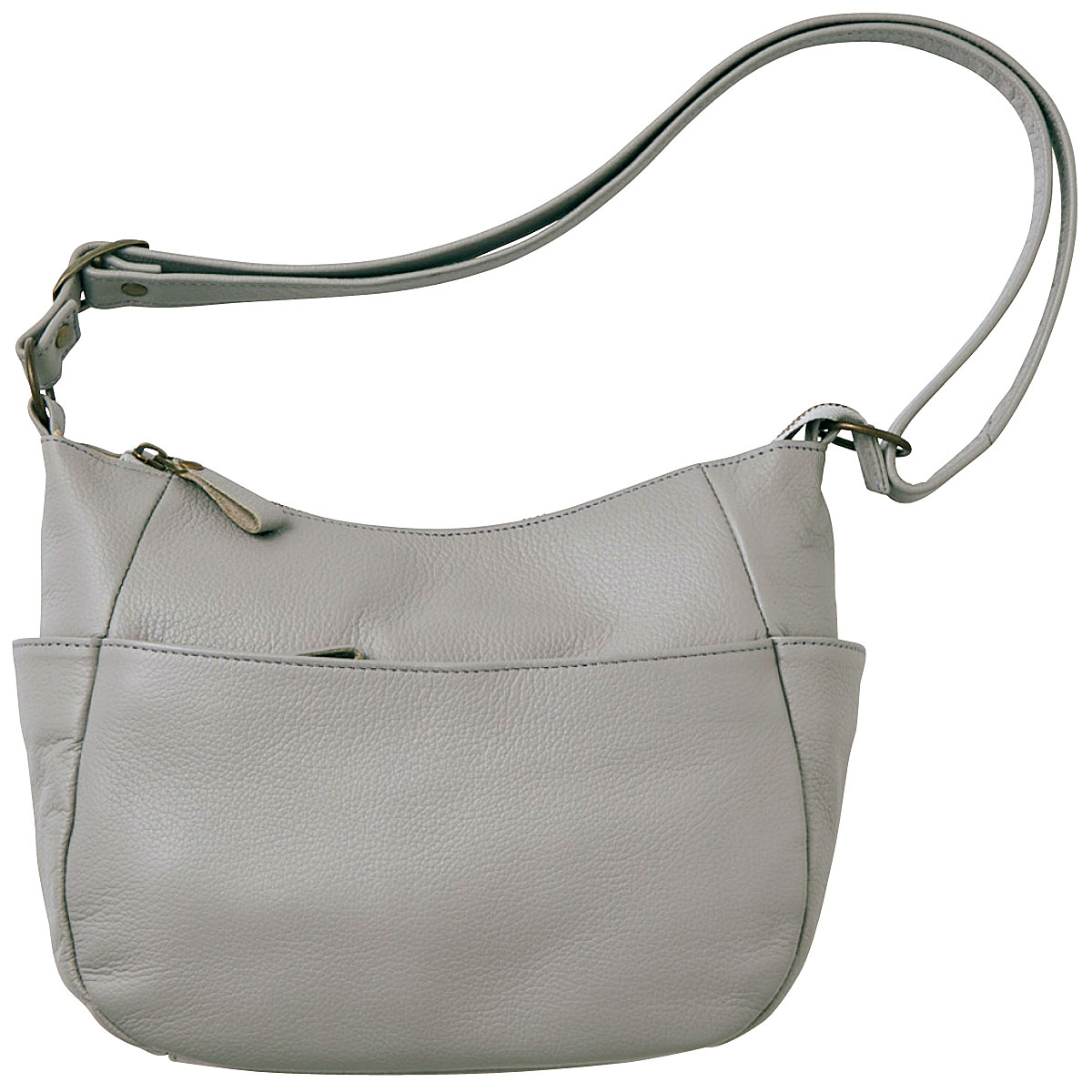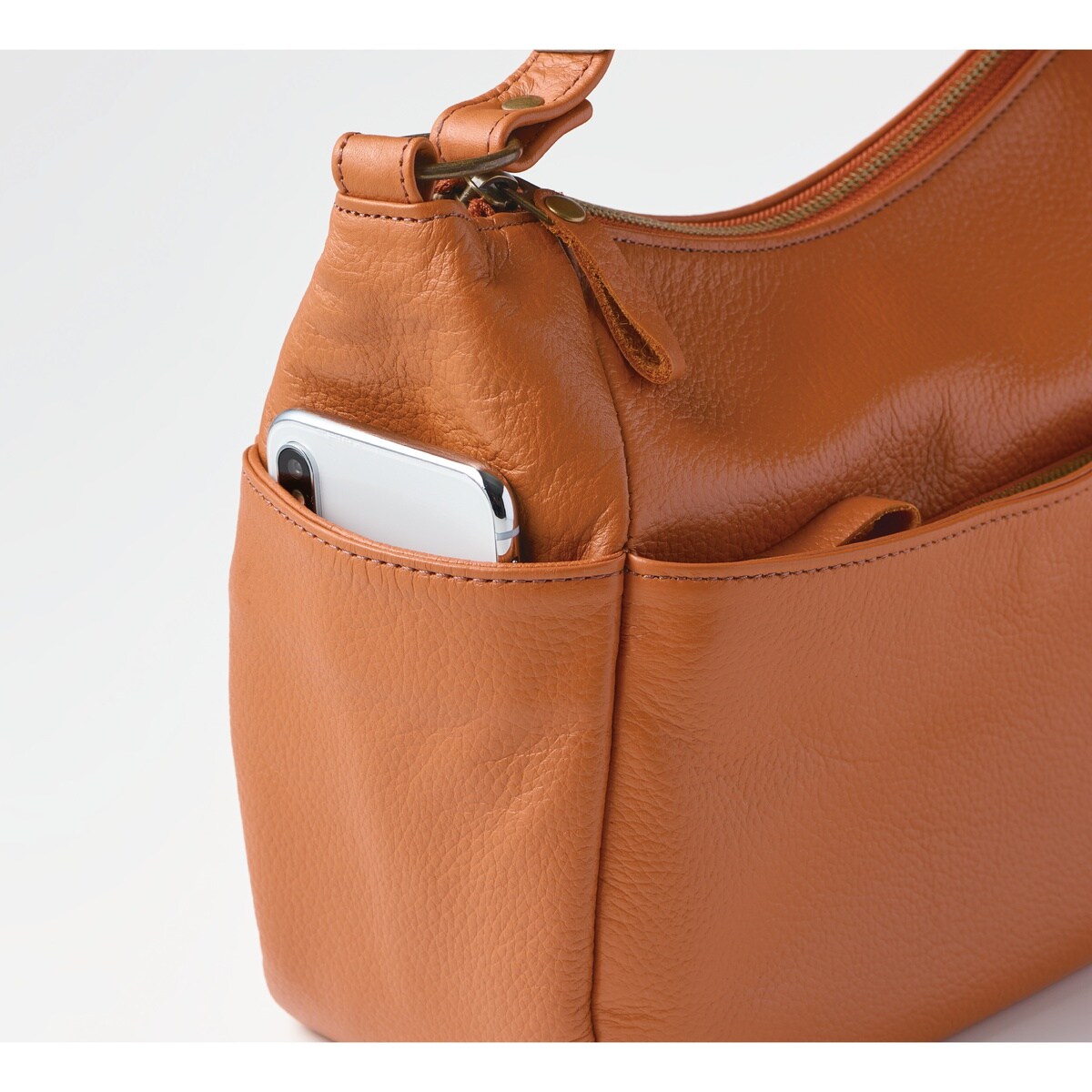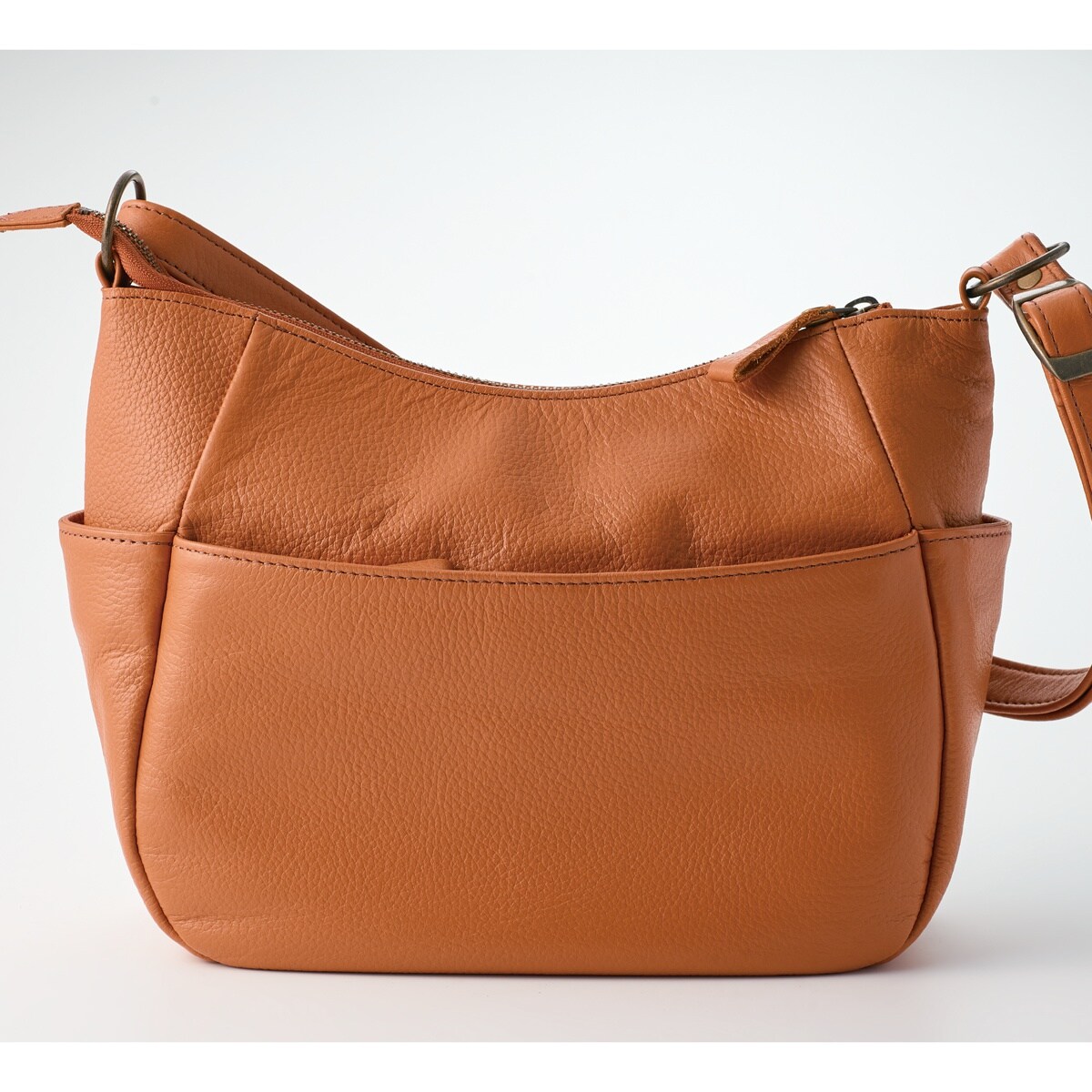 多彩なポケットを備えた名品。職人技が光る、丁寧になめされた柔らかさが魅力の姫路レザ―。傷が目立ちにくいシボ入りで収納力も充実しているから日常使いで重宝します。肩掛けでも斜め掛けでも使用可能!ーこだわりPOINTー両サイドにはスマホやICカードの収納に便利なオープンポケット付き。オープンポケット2つとファスナーポケット1つに小物を分けて収納できます。両面にファスナー付きの大きめポケットがあり、手帳などがすっぽり。