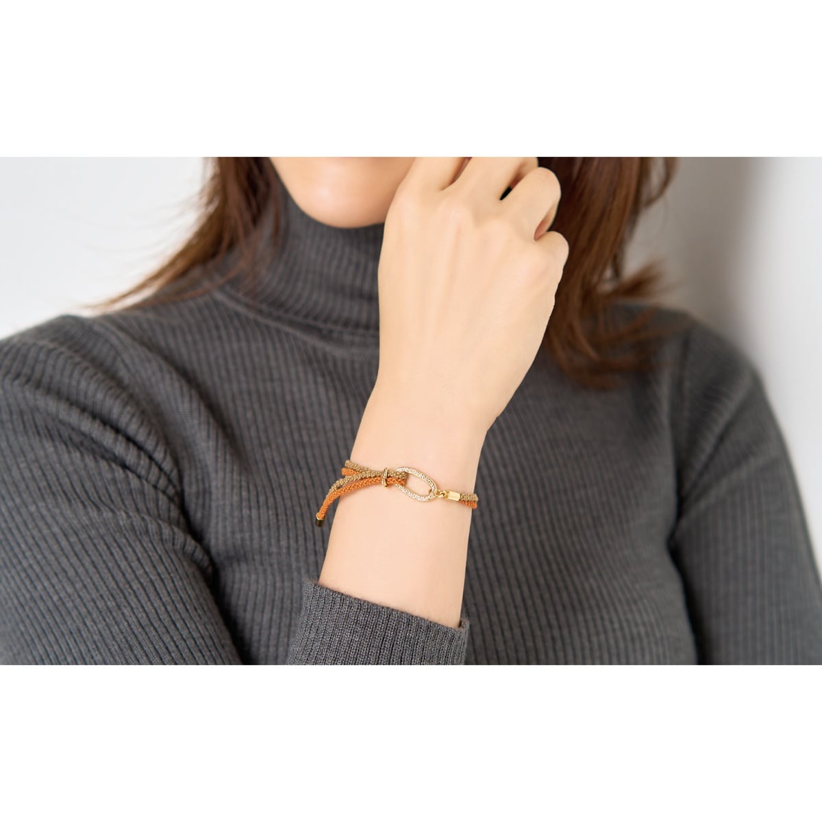 オレンジ系ゴムひもに導電性繊維を編み込んだブレスレット。