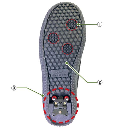 (1)ピラミッド型クリップ:体重がかかる3箇所に配置することで、すべりやすい路面での安定歩行をサポート!(2)全体を覆う凹凸ソール:踏み固められた雪の上でもすべりにくい!(3)すべりに頼もしいWグリップスパイク:折りたたみ式のスパイクが凍った路面をガッチリキャッチ!普段使いの際は閉じておき、いざという時にワンタッチで簡単に出せます。