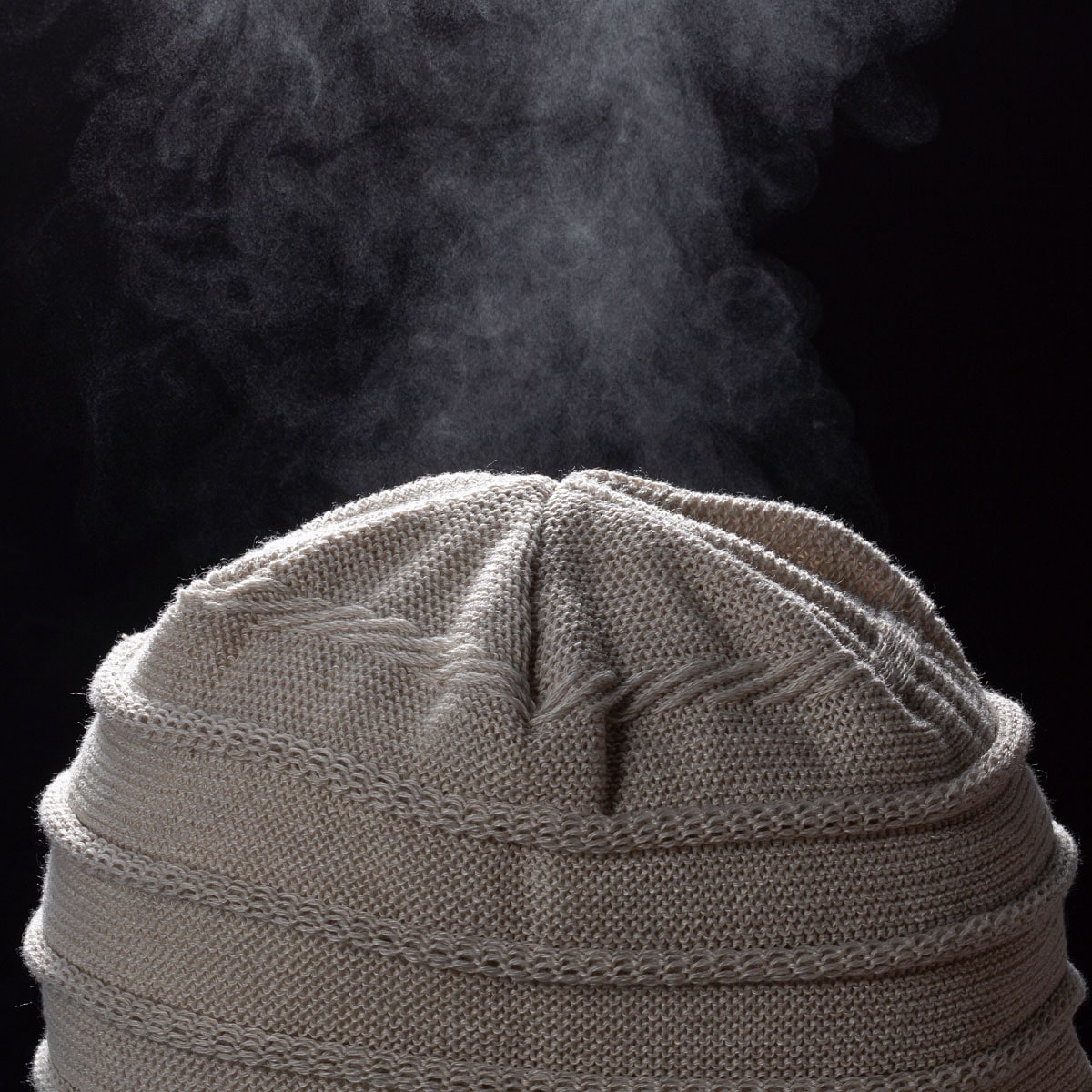 国産尾州ニットを使用したニット編みなので通気性がありムレずに快適な着用感。髪がつぶれにくいゆったり感があり、後ろ姿もお洒落なシルエットです。薄毛隠し、白髪隠し、乱れ髪隠しにも。ゴム糸不使用なのに脱げにくく締め付けません。