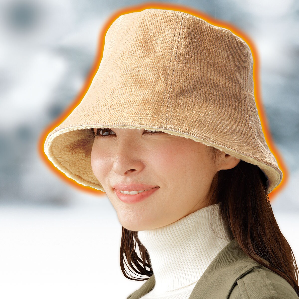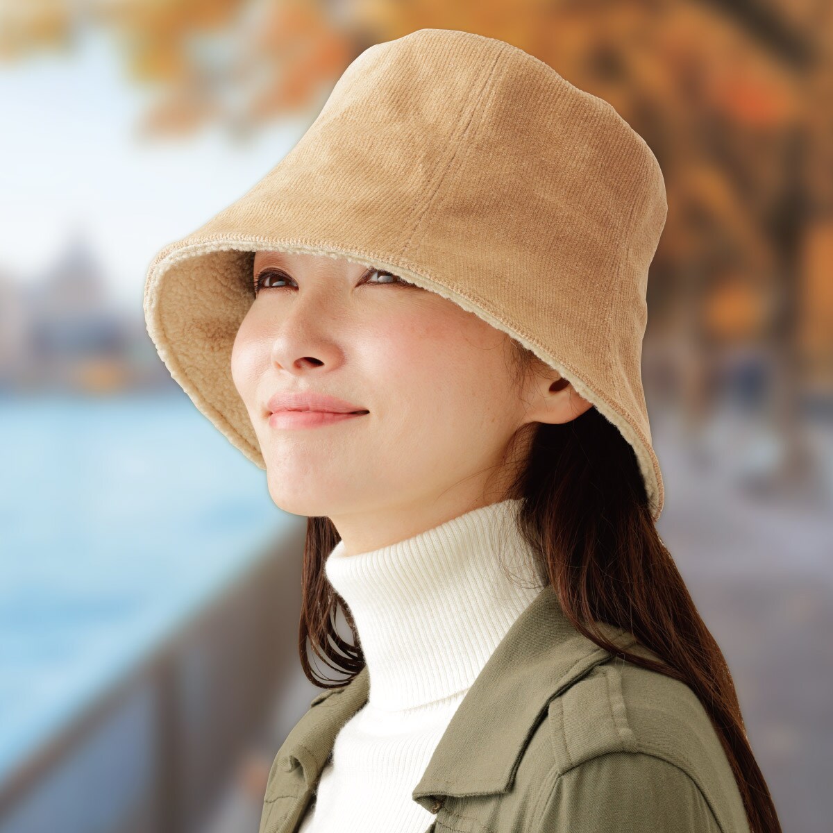 • あったかコーデュロイすっぴん小顔帽子 | ベージュ