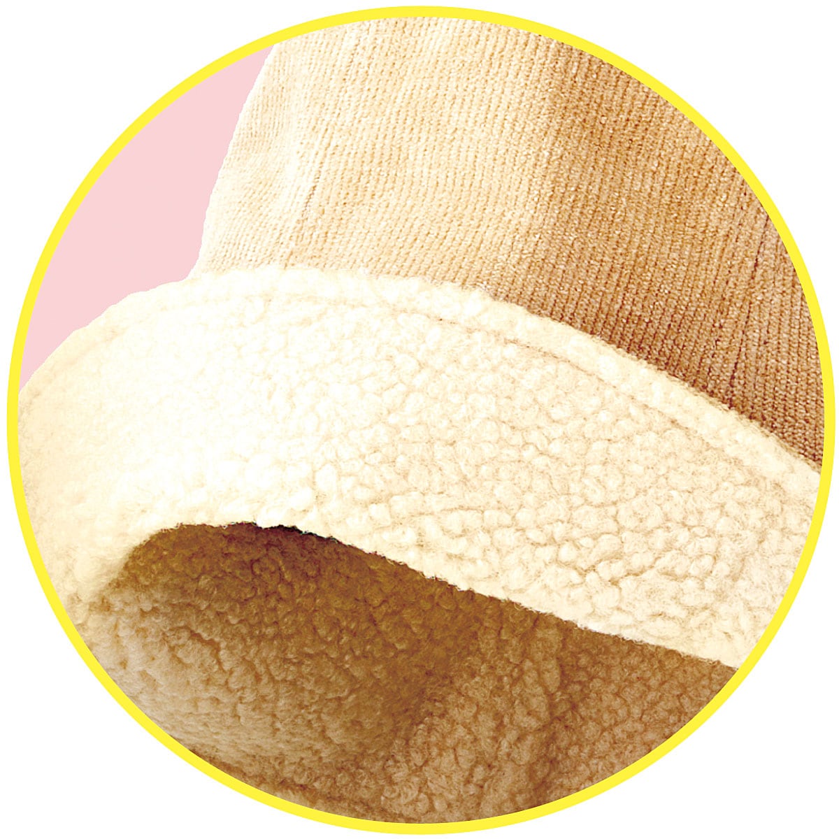 つば裏があたたかなボア素材のコーデュロイ帽子。