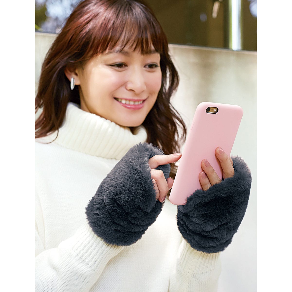 いつもの袖に ワンポイント!あたたかファー付きアームニットカバー