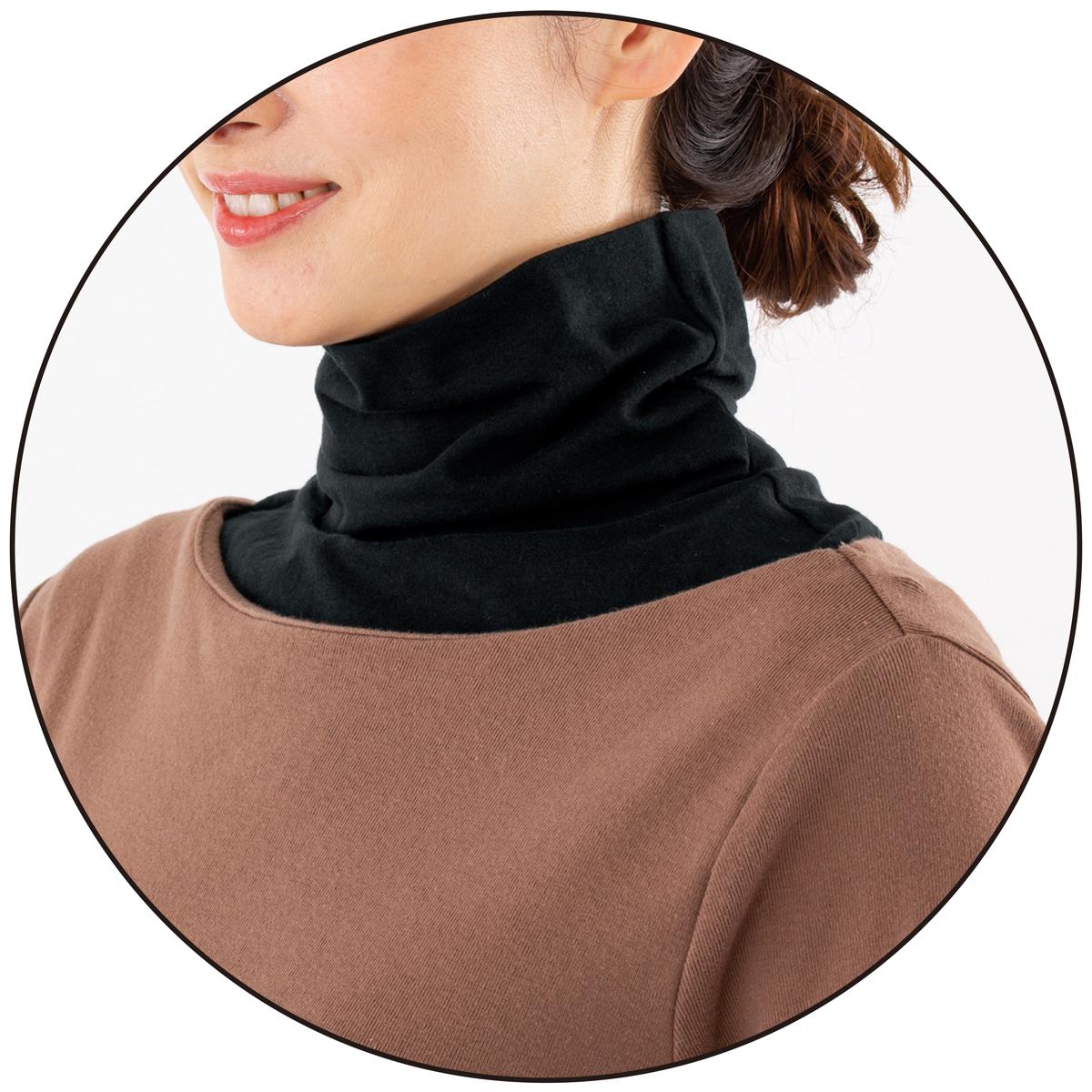 しっかり立ち上がるデザインで洋服の中に入れれば重ね着風。おしゃれにあったか。薄型なのでアウターに響きにくい。ラジウム遠赤シリーズ内側にラジウム鉱石を練りこんだ遠赤外線プリントを高密度に配置。【シリーズ累計販売実績16万枚突破!】2018年9月~2025年3月 ※メーカー調べ