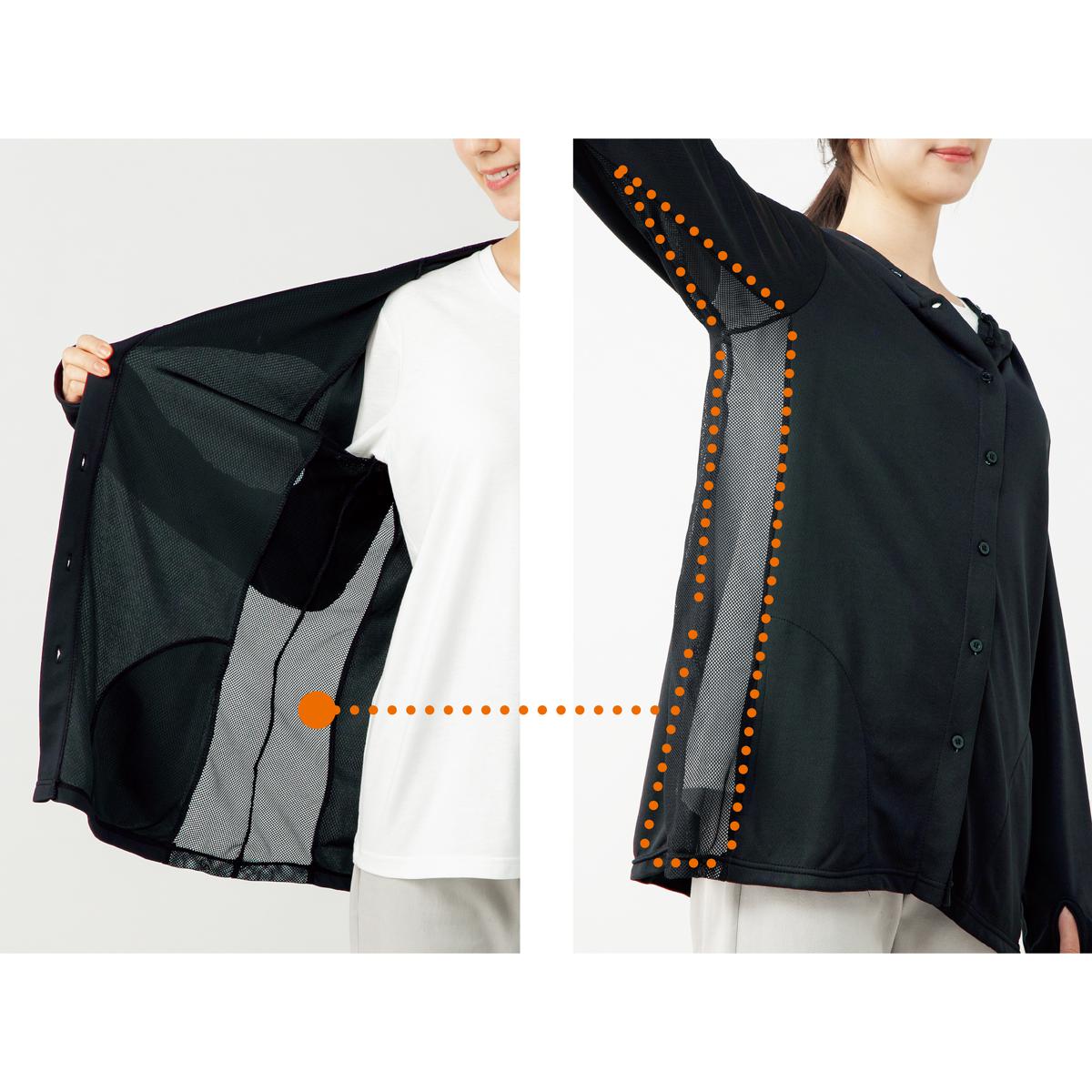 放熱吸汗首までカバーするUVパーカー