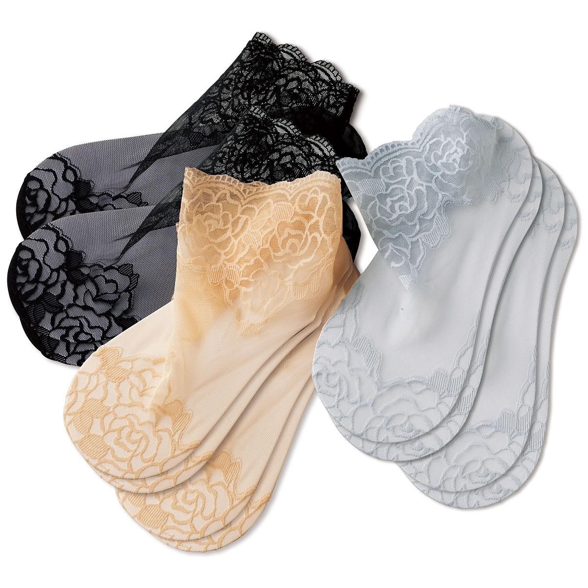 上品な花柄レースの透け感が、足元をエレガントに(3色×2足)