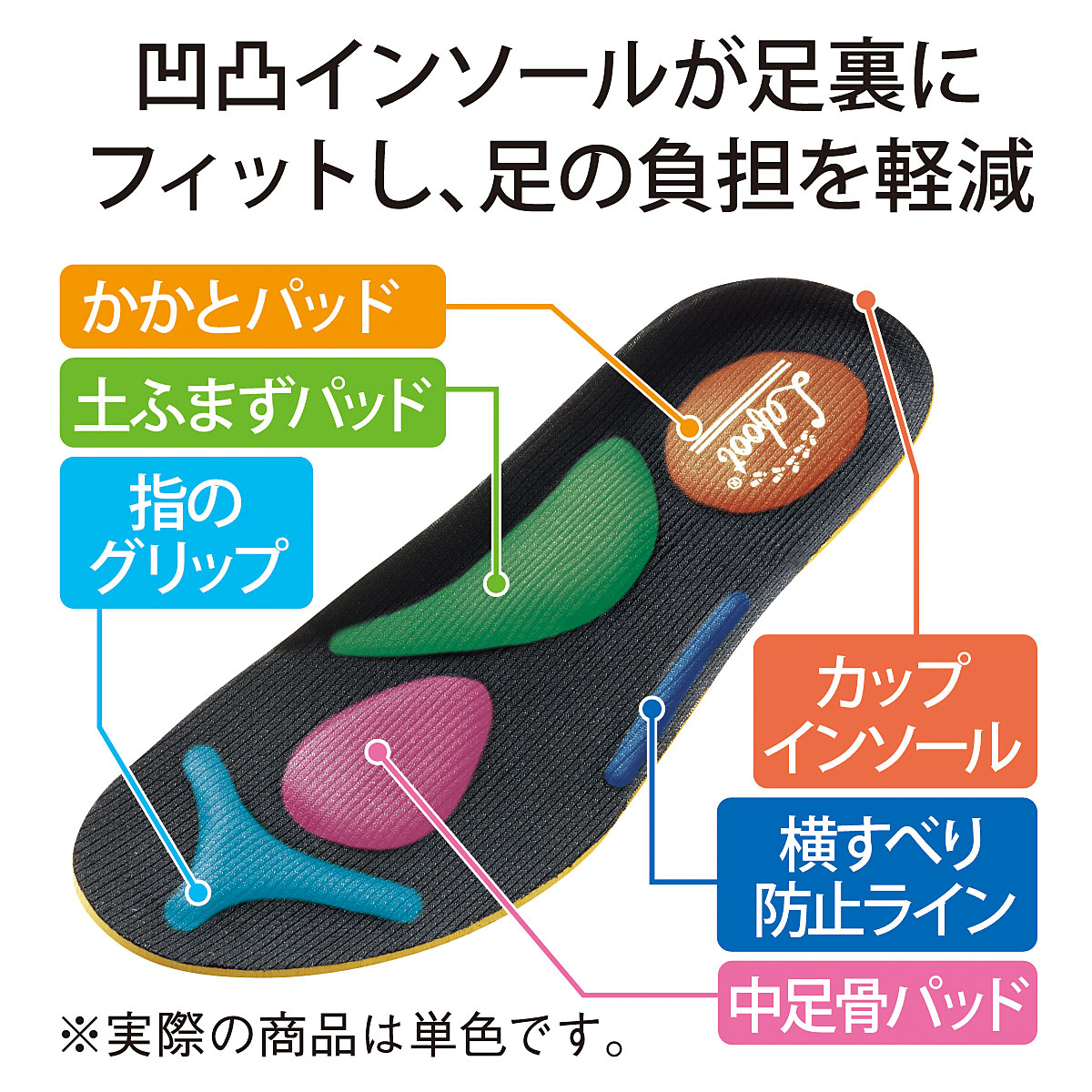 凹凸インソールが足裏にフィットし、足の負担を軽減