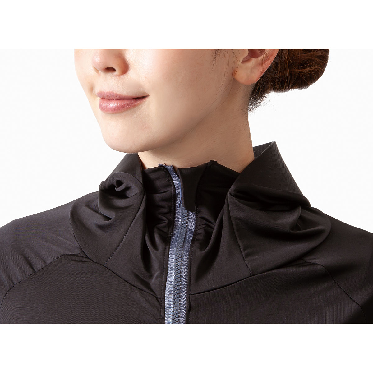 ポケット付き。指穴付きの袖口で手の甲、手のひらもしっかりカバー。