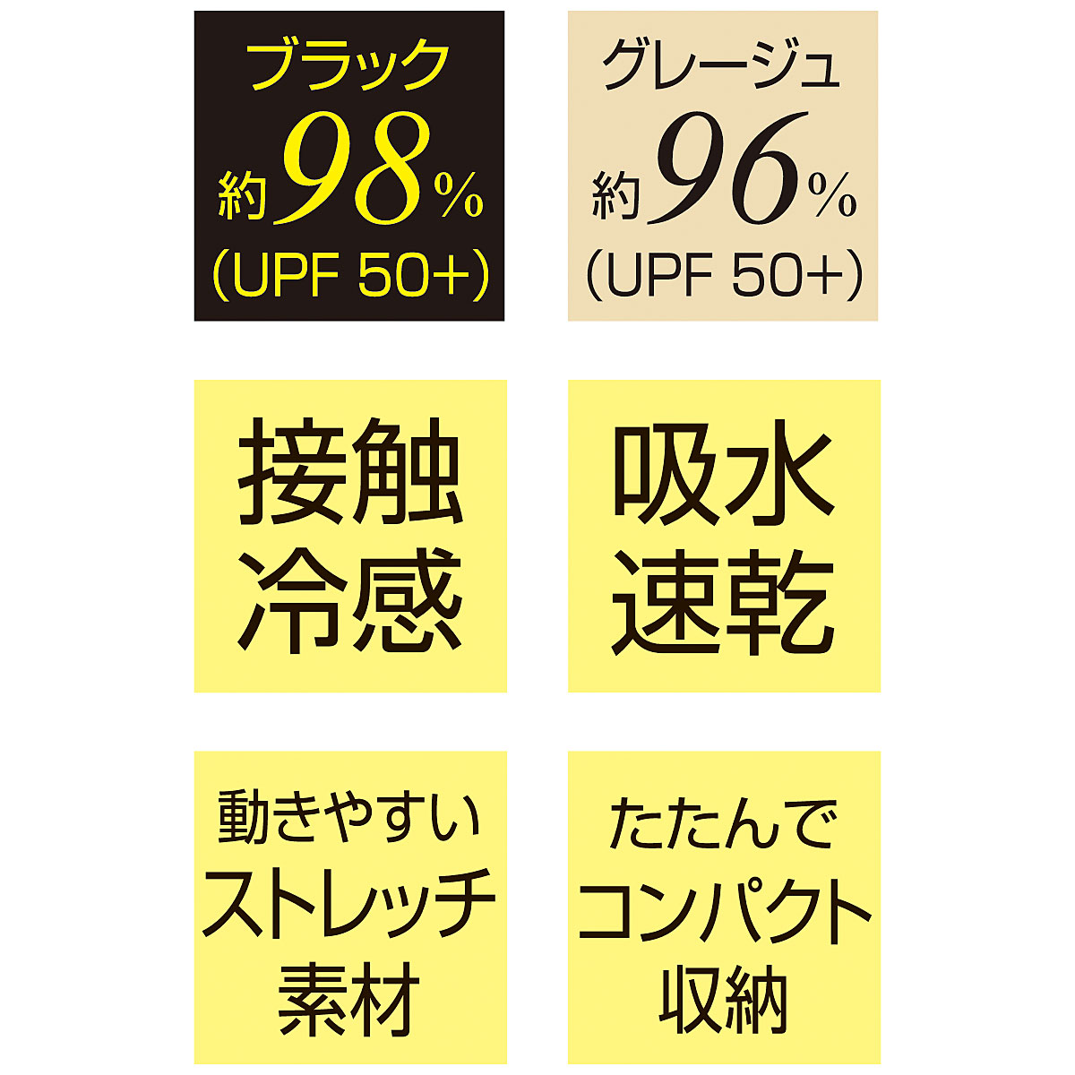 ■ポリエステル90%、ポリウレタン10%●洗濯機OK(ネット使用)【UVカット率】ブラック/約98%グレージュ/約96%(UPF 50%+)●中国製