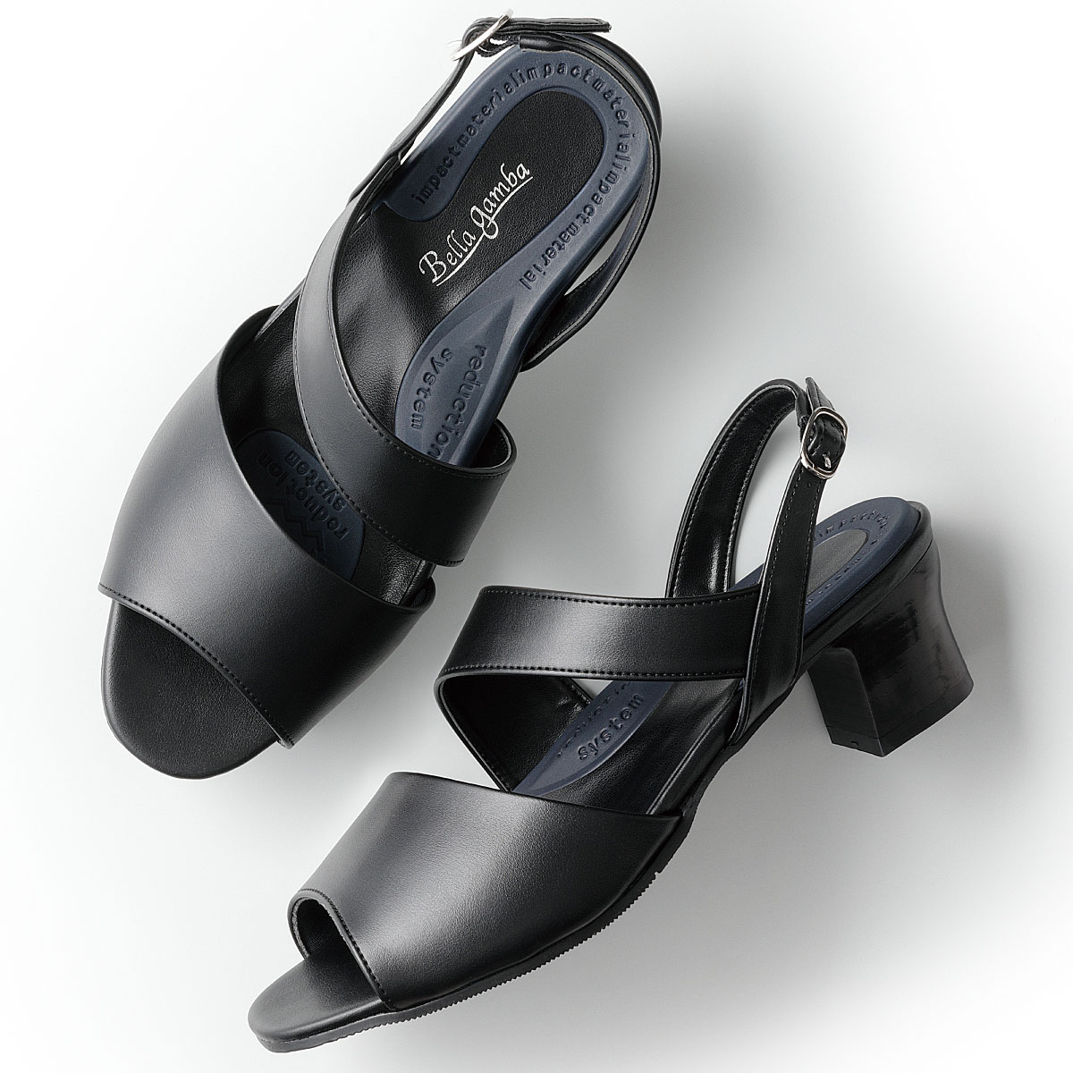 足と靴の専門家が共同監修した軽量サンダル。一日中履いても足が軽くラク!外反母趾の方や甲高、幅広の方にもオススメ。ー快適歩行をのための4ポイントー(1)屈曲性のよいソールで歩きやすい(2)安定感のあるカーブ形状ヒールのため、ぐらつきにくい(3)指周りは内側クッションで痛くなりにくい(4)踵ベルトは隠しゴムで金具の取り外し不要のため、着脱簡単【抗菌】ベルト内側、インソール(合皮部分)、甲部内側ウレタン【軽量約182g(23cm片足)】