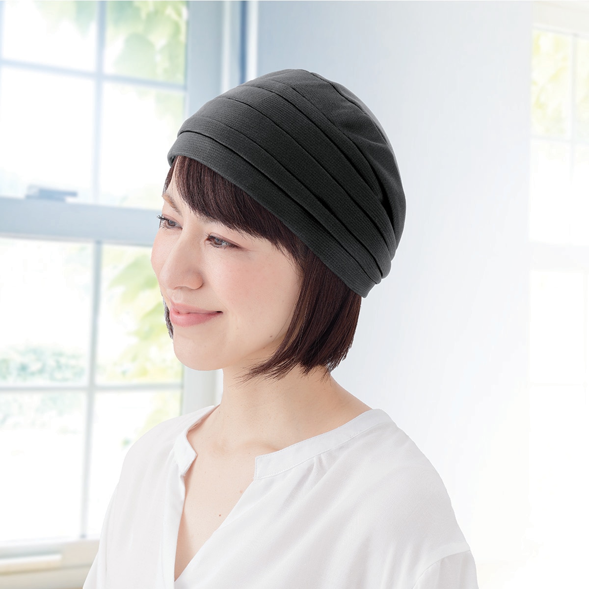 やわらかく締め付け感のないかぶり口で、気になる薄毛・白髪・寝ぐせを手軽に隠せます。ムレにくく1日かぶっていても快適!おうち用にもおでかけにもおすすめです。素材は伸びが良いためかぶりやすく、後ろは縫って固定してあるため、キレイなシルエットをキープできます。