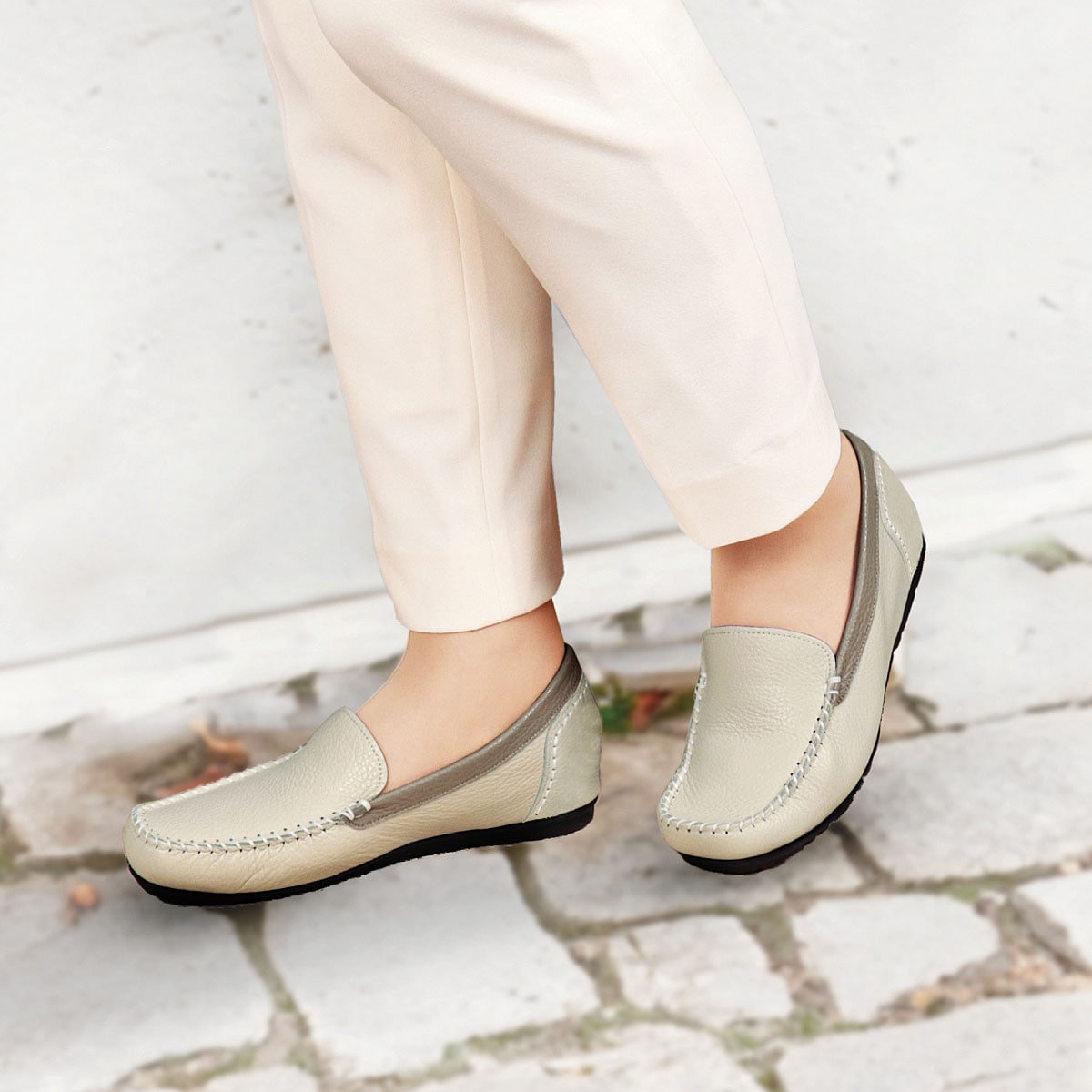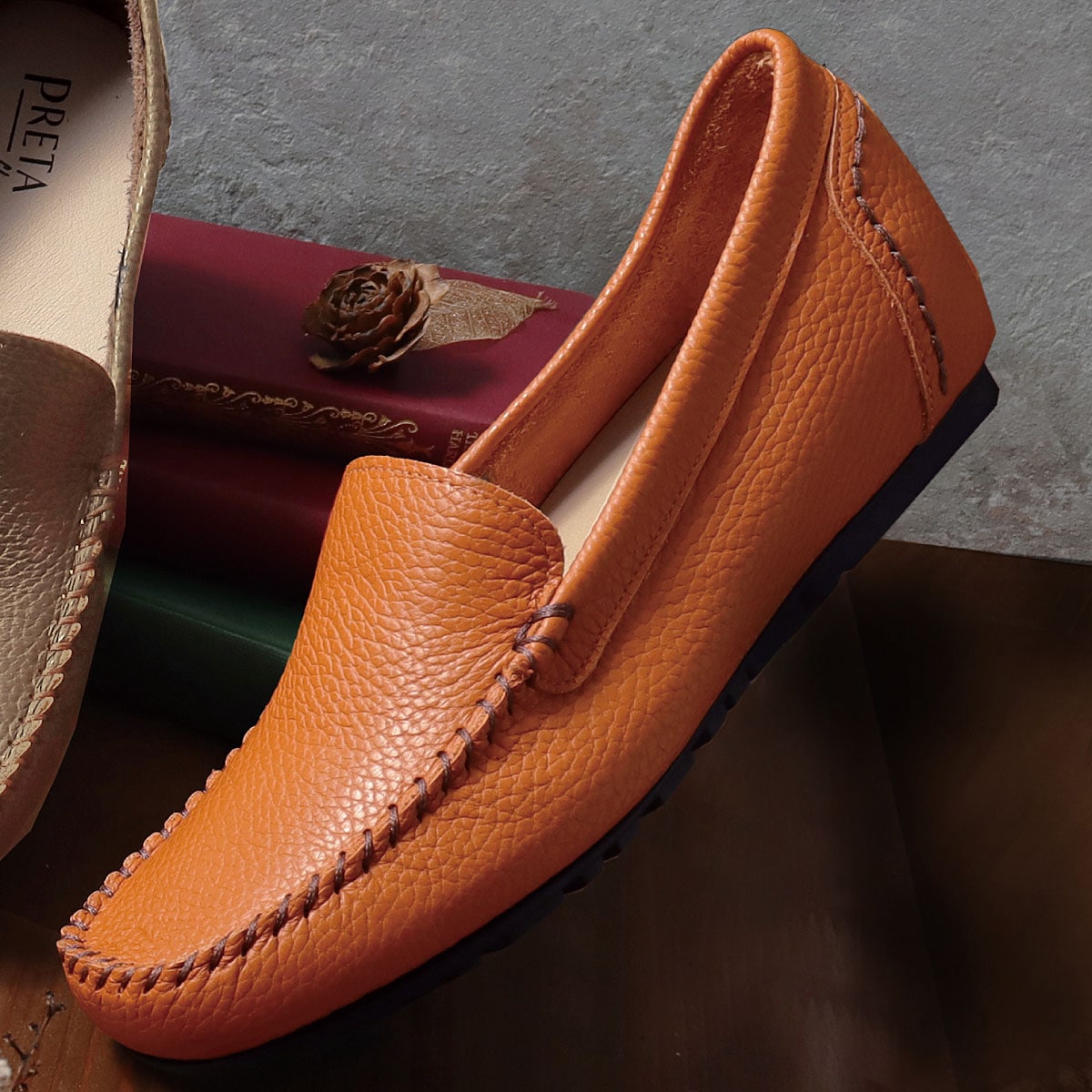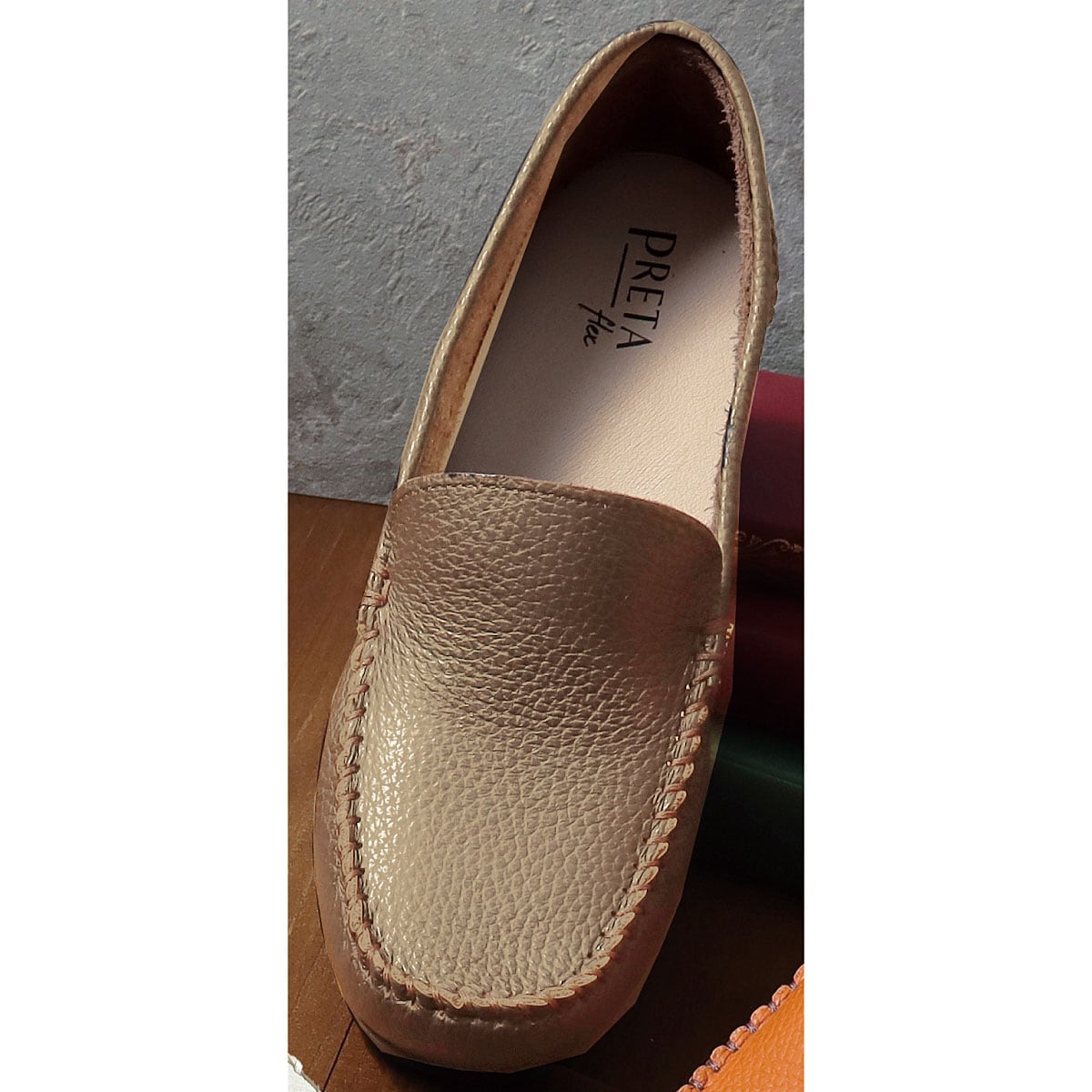 ーデザインー甲部分は手縫いのステッチが美しい曲線を描き、シンプルなアクセントに。美しいフォルムが肌にピッタリと馴染みます。【PRETAflex】永遠のお気に入りプレタフレックス。「長時間履いてもラク」軽さ・しなやかさ・クッション性履きやすさを追求した神戸発のモカシンブランドです。~重心の安定感で姿勢もサポート~桜美林大学 名誉教授 阿久根英昭氏が検証!株式会社成和が独自開発したモカシン靴のインヒール化・ミシン式靴底接合化・軽量化を評価。一度履いたらわかるPRETAflexのこだわり。優れたクッション性で、履き心地だけでなく安定感も追求しています。重心が靴底に分散されることで、姿勢補助にもなるバランスの良さ。足裏に感じる安定感は履いてすぐにわかるほどです。歩行する際にも足が前に出しやすくなり、街歩きにもショッピングでもラク。インソール、牛革、職人による手縫い…細部までのこだわりにより、「歩きやすくラク」を実現しました。国産にこだわった、成和のモカシンシューズ、ふだん使いでもどこでも場所を選ばない自信作です。季節やお洋服に合わせて、様々なシーンで美しくお楽しみください。■素材/[甲材]牛革(イタリアンレザー)[中敷]ポリウレタン[インソール]EVA[底材]軽量発泡合成ゴム■ヒール高/約1.3cm■インヒール/約1.5cm■重量/約180g(23.0cm片足)■ワイズ/3E相当※天然皮革のため、若干のシワおよび色落ちが見られることがあります。※強い摩擦や湿った状態で使用すると、色落ちすることがあります。※少し小さめの作りのため、普段お履きのサイズよりも1つ上のサイズをお選びいただくことをおすすめ致します。●日本製※靴の試し履きは必ず室内でお願いします。一度ご使用になられた靴の交換、返品はご遠慮ください。※雨の日や濡れた路面でのご使用の場合にはスリップや転倒の危険がありますので、歩行の際には十分ご注意ください。