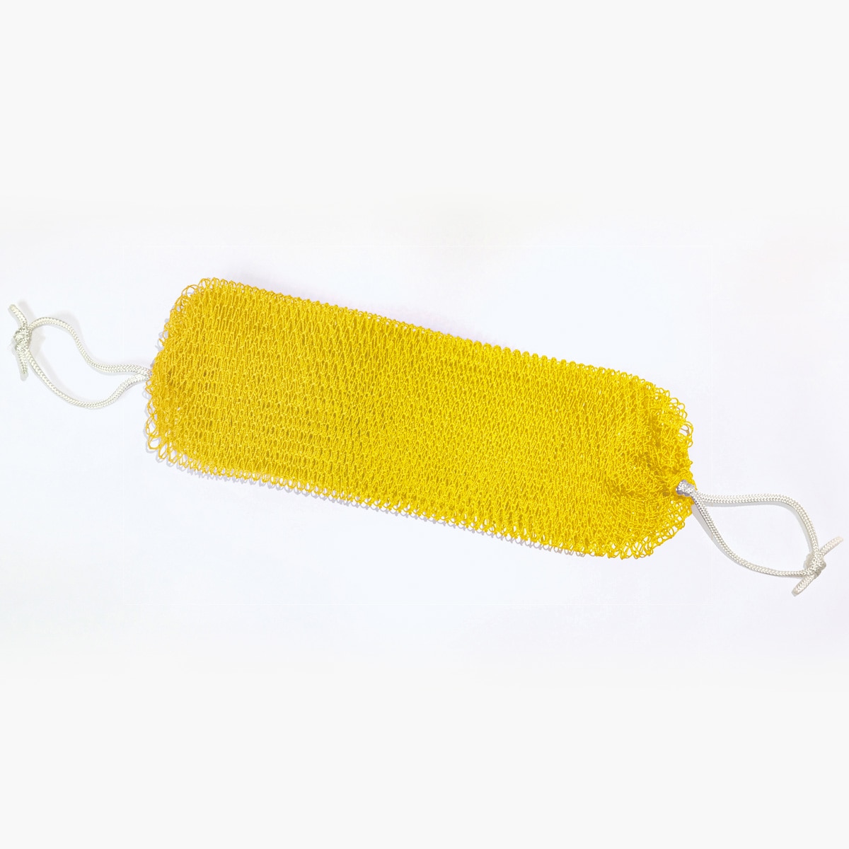 背中スッキリ気持ちいい日本製ボディタオル。両端に紐付きで背中も洗いやすい!創業90年余千葉県木更津の漁網店が製造。魚を獲る網を使ってひとつひとつ手作業で丁寧に作られました。-こだわりPOINT-粗めの網目が絶妙な肌あたり!丈夫で長持ちし、泡立ちが良い!すすぎ洗いも簡単。