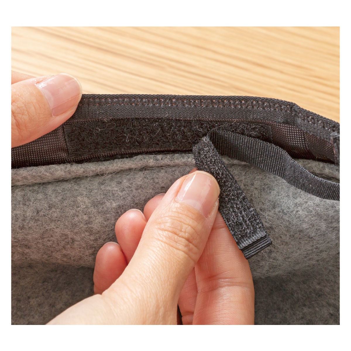 内側の面ファスナーでサイズ調整可