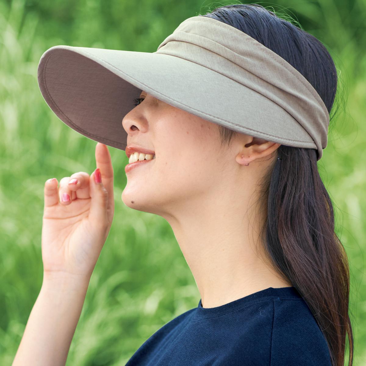 ~21の多彩な機能~1.小顔を演出…大きめつばとすっぽりかぶれるデザインで小顔を演出。2.UVカット率99%以上…強い紫外線から肌を守ります。3.あごヒモ付き(取り外し可能)…風の強い日や自転車に乗るときも安心。フックで取り外しOK。4.アレンジ自在…帽子上部はファスナー付きで取り外し可能。帽子にもサンバイザーにも!5.つばに工夫…風で裏返りにくいよう、つばにウレタン入り。6.サイズ調節自在…ジャストサイズに調節可能。7.UPF(紫外線保護指数)50+でしっかりガード。8.1級遮光(つば部分)…遮光率99.99%。9.近赤外線カット率99%以上(つば部分)…皮膚の真皮まで届き、シワやたるみの一因と言われる近赤外線をカット。10.遮熱(つば部分)…つばの内部に遮熱素材を使用し、暑い日射しをガード。11.内側(※1) は吸水速乾のメッシュ生地でムレにくい。12.花粉リリース率約85%…花粉リリース率の高い素材を採用。花粉シーズンのお出かけにも。13.折りたたんでコンパクトに。14.髪を結んだままでもOK…後頭部から結んだ髪を出すことができます。15.ヘアスタイルが崩れにくいふんわり設計。16.オールシーズンかぶれる…季節を感じさせない素材でシーズンを気にせず使えます。17.洗濯機(ネット使用)で丸洗いOK18.接触冷感(※2)…ひんやりとした心地よい感触。19.吸水速乾(※2)…優れた吸水速乾性を発揮。20.消臭(汗)(※2)…気になる汗臭を抑えます。21.制電(※2)…不快な静電気を抑えます。※1 頭にかぶる部分の内側※2 お肌にあたる内側テープ部分に機能性素材「ビスクール®」を使用。【UVカット率99%以上】【UPF50+】【近赤外線カット率99%以上】(つば部分)【1級遮光】(つば部分)【遮熱】(つば部分)■素材/ポリエステル100% ■サイズ(約cm)/[つば]12 ■適応サイズ(約cm)/[頭囲]56~59. 5 ※洗濯機OK(ネット使用) ●あご紐付き●中国製※UVカット率は生地本体のデータで、着用状態により変わります。