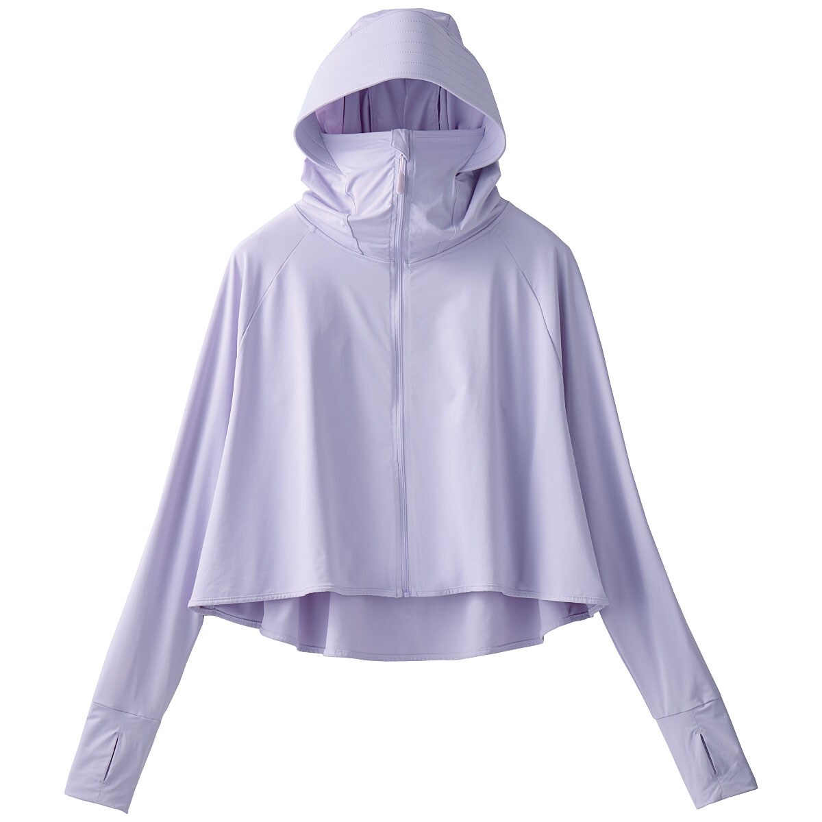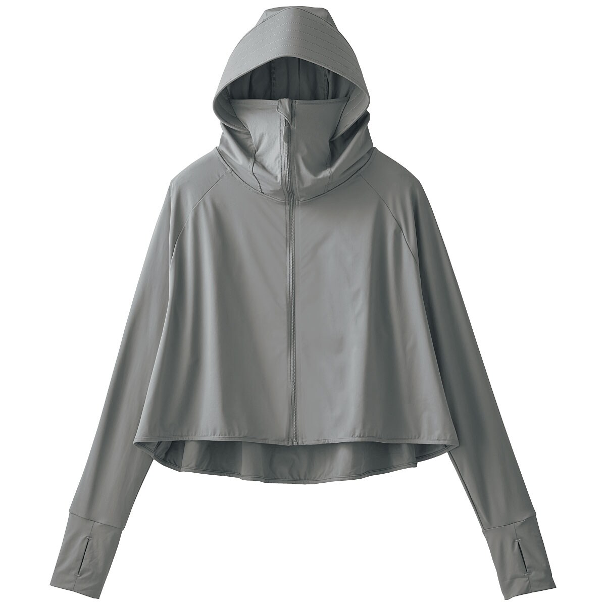 夏にうれしい機能を盛り込んだパーカー。大きなツバと口元まで上がるフロントジッパーで、顔周りをしっかりカバー。サラッとはおって買い物やウォーキングに。-デザイン-ボレロ風の短い丈で風を通しやすい。フードには髪を通せる穴付き。顔周りをすっぽり覆うフロントジッパー。親指が出せる指穴付きで甲までカバー。-素材特性-口元はメッシュ素材を使用。【UVカット率約98%】(ピンク、ラベンダー)【UVカット率約99%】(チャコールグレー)