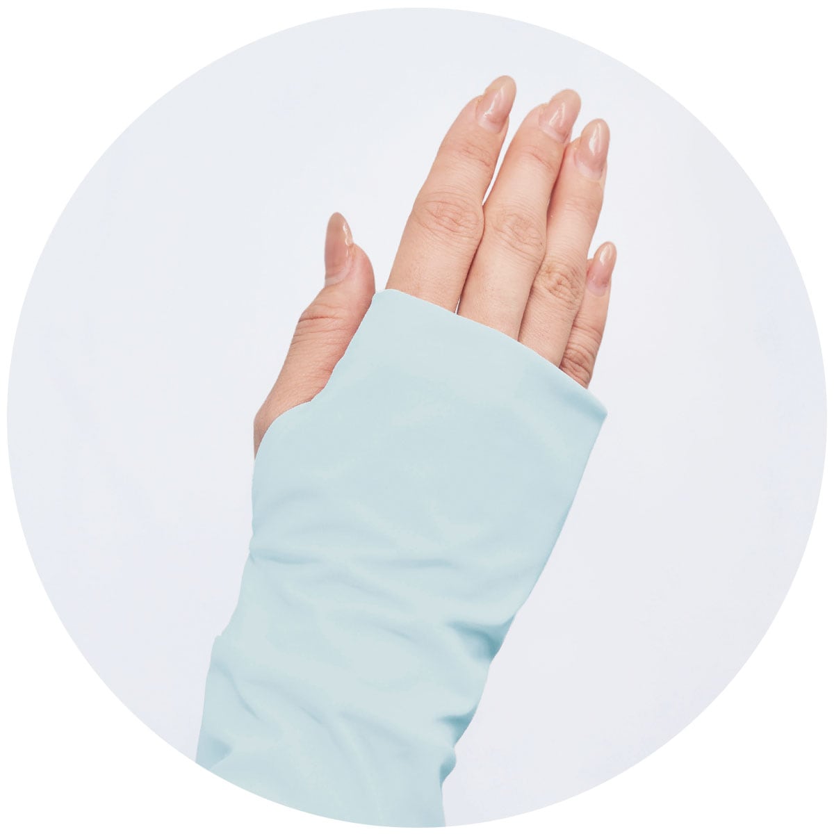 親指が出せる指穴付きで甲までカバー