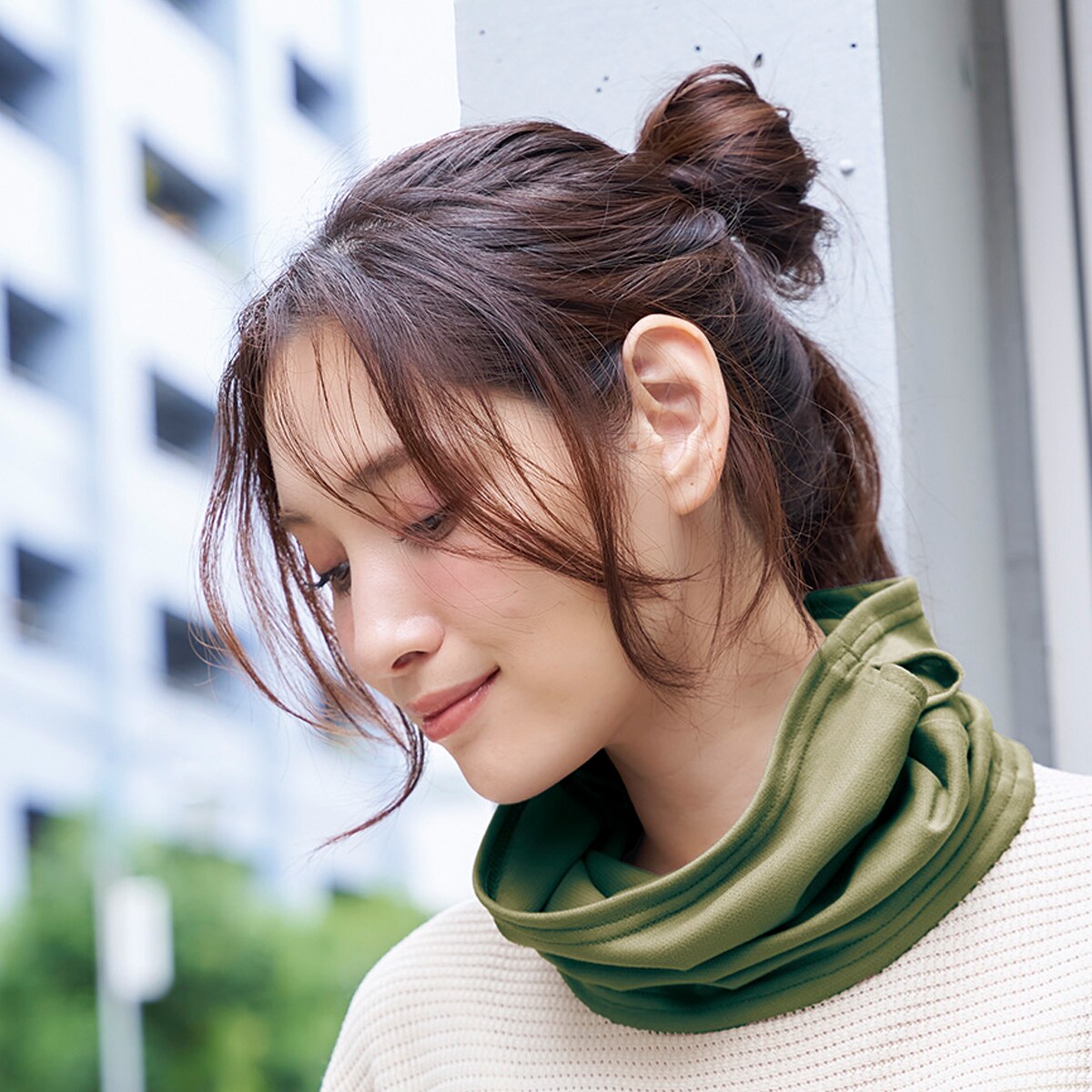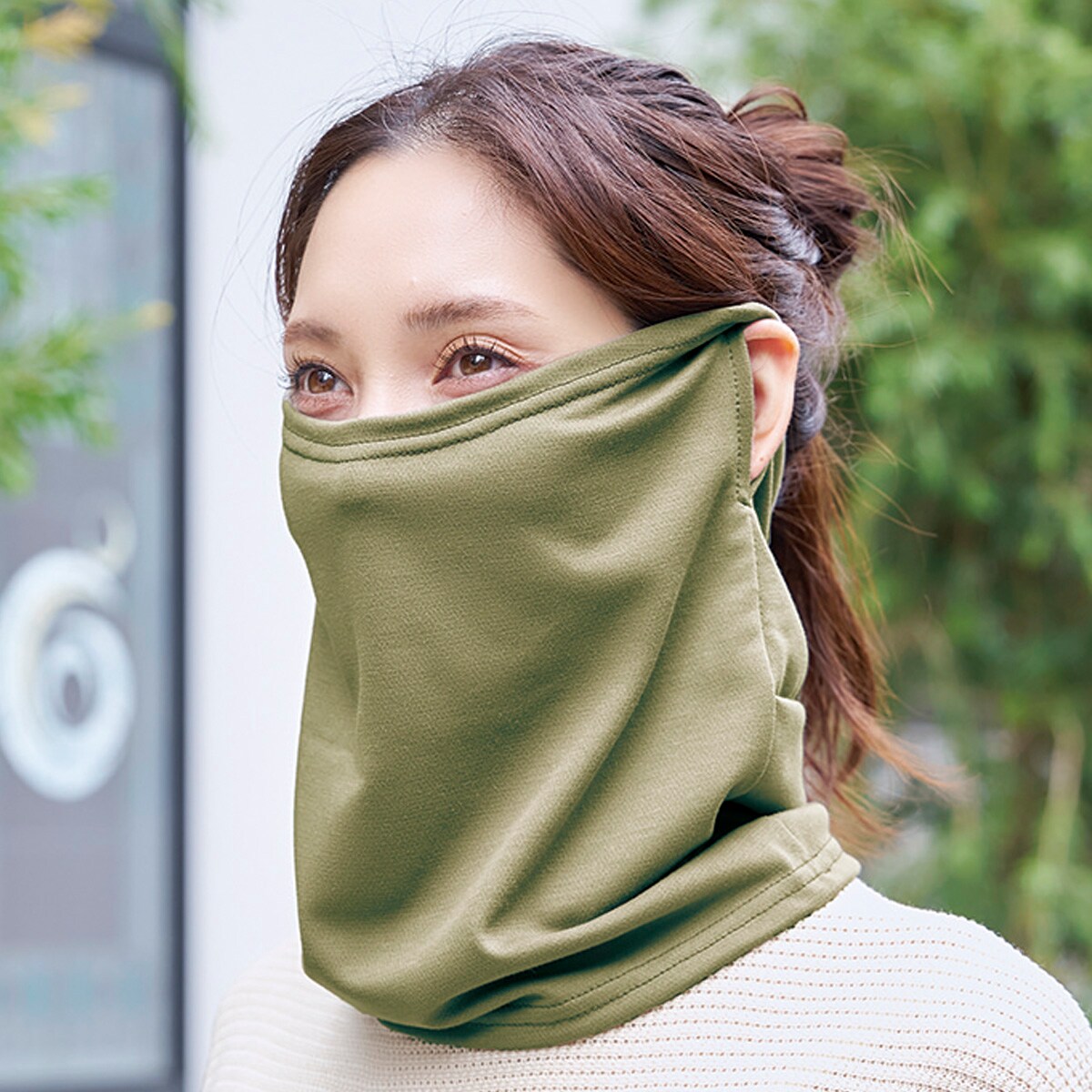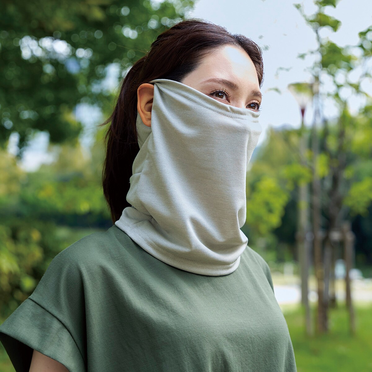 フェイスカバーにもネックカバーにもなる2WAY仕様。首後ろのポケットに、付属の保冷剤を入れれば、ひんやり快適!ー素材特性ー綿のようなナチュラルな風合いで、さらっと軽やか。遮熱・遮蔽性機能生地使用で見た目も使用感も涼やか。夏でも息がスーッと通りムレにくい。ーデザインー耳にかけられるのでずり落ちにくい。