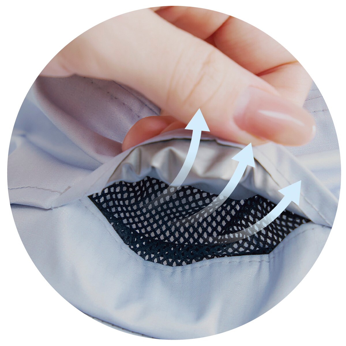ベンチレーション&内側メッシュ生地でムレにくく快適