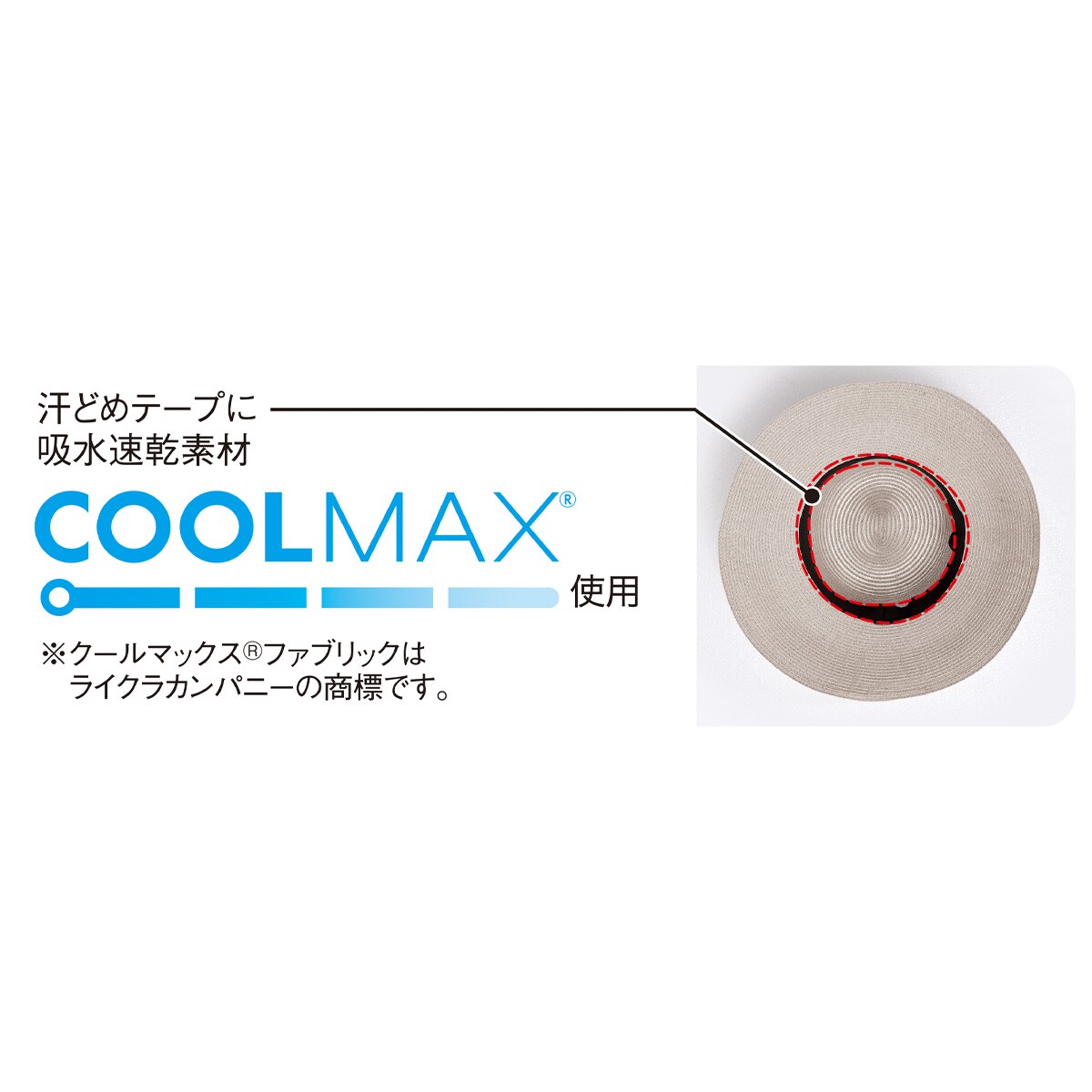 汗どめテープに吸水速乾素材 COOLMAX使用