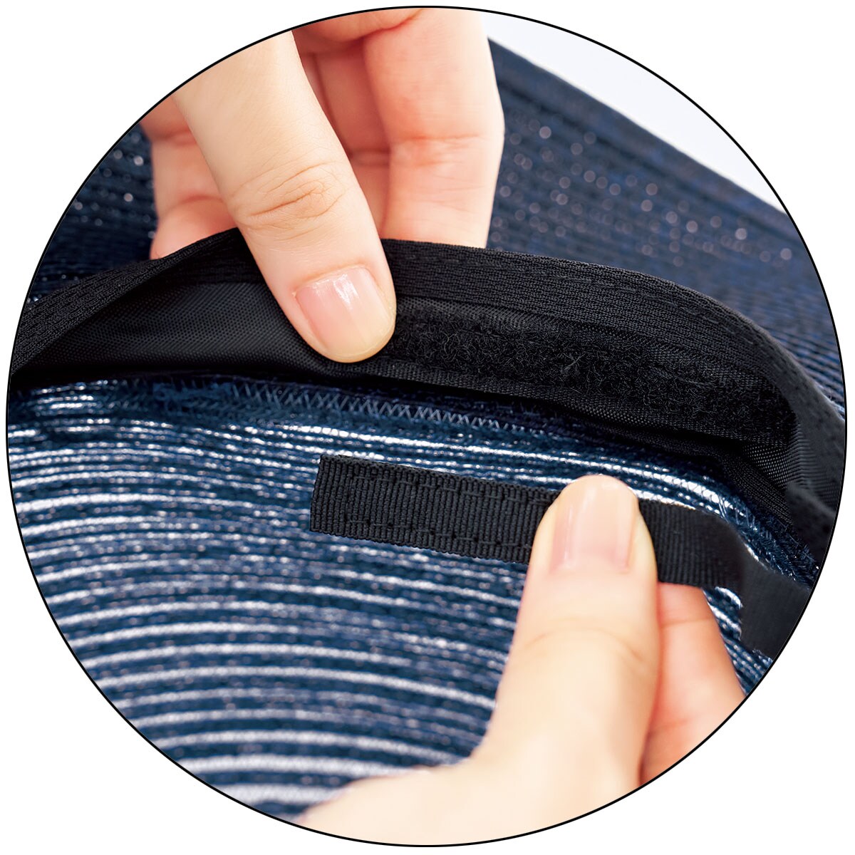 ーこだわりPOINTー頭部分は透け感のあるブレードでムレにくい。丸めて持ち運び可能。内側の面ファスナーでサイズ調節もできます。手洗いOK!ー素材特性ー汗どめテープに吸水速乾素材COOLMAX®を使用。※クールマックス®ファブリックは、ライクラカンパニーの商標です。【UVカット率約99%】 ネイビー(つば部分)【UVカット率約98%】 グレージュ(つば部分)