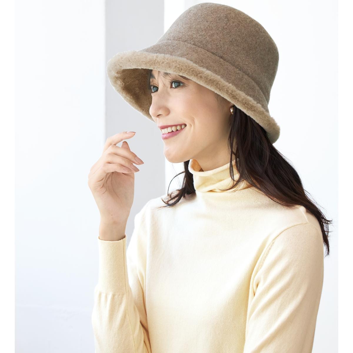 ■素材/[表地]毛66%、ポリエステル26%、ナイロン8% [ボア部分]ポリエステル100% ■適応サイズ(約cm)/[頭囲]56.5~60 ■サイズ(約cm)/[前つば]8 [後ろつば]4.5 ●あご紐付き ※手洗いOK●中国製