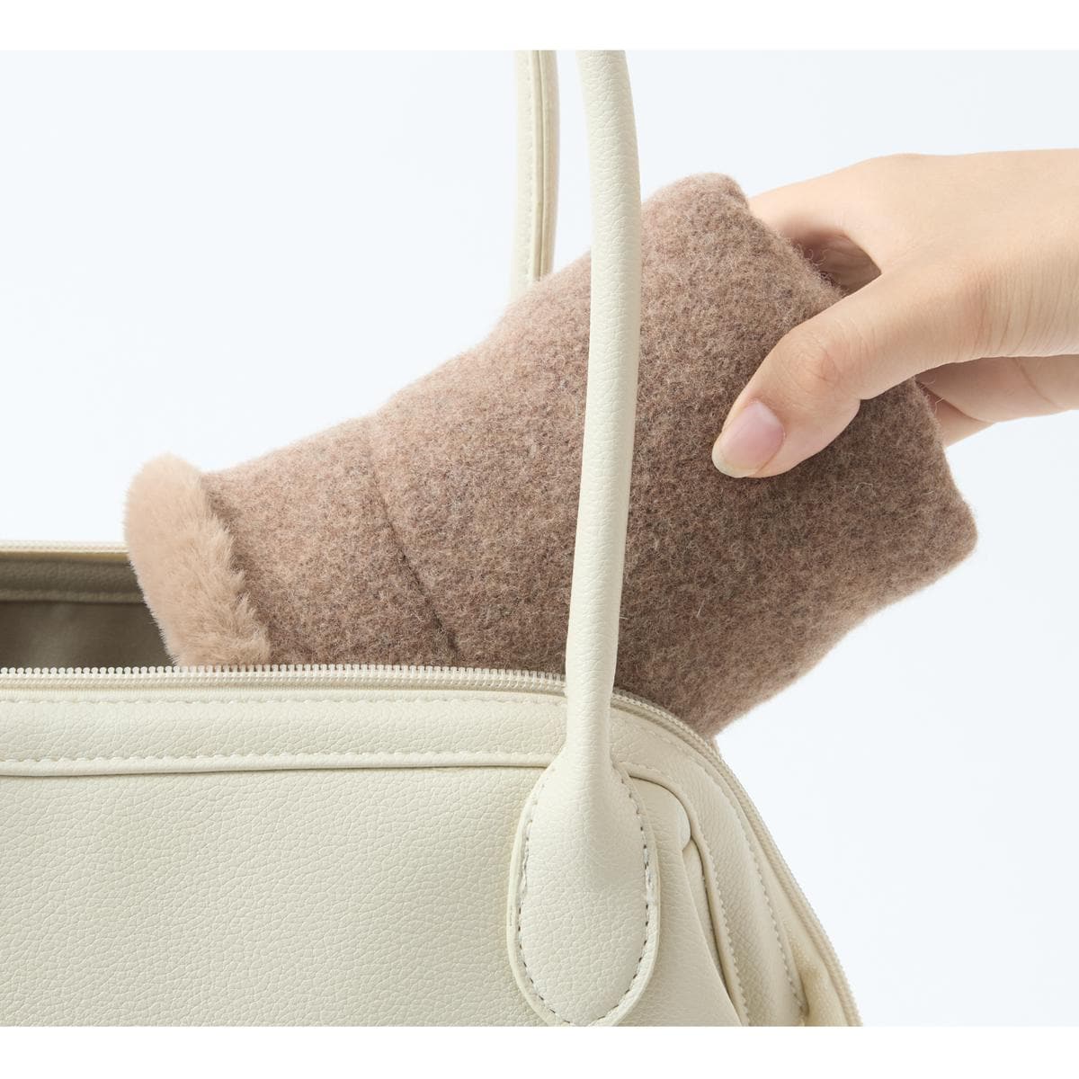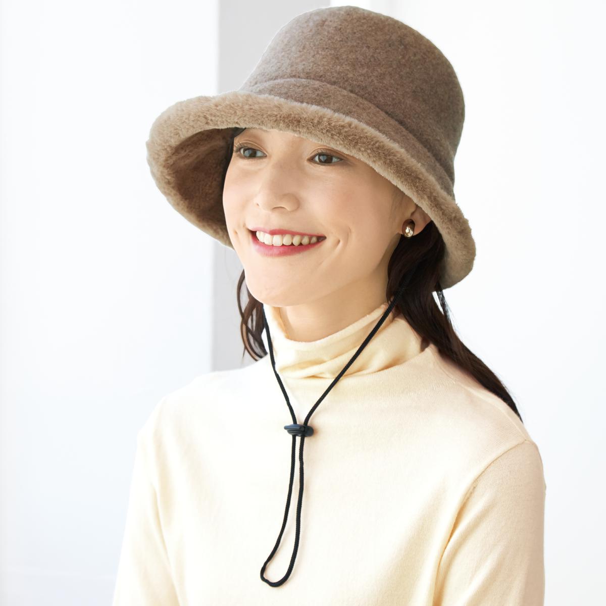 つばの裏側全体にふわふわのボア素材を使用耳や首筋を包み込み、寒さから守ります
