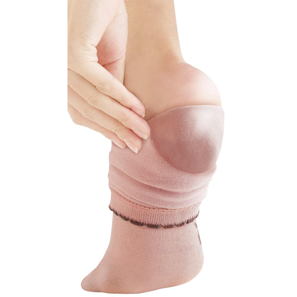 かかとがガサガサ・・・はいているだけでかかとケア!見た目はおしゃれなソックスながら、肌側かかと部分にシリコンシートを搭載。家事や外出時間がケアタイムに。ーこだわりPOINTーかかと部内側のシートが、かかとの乾燥を防ぎ、潤いをキープ。