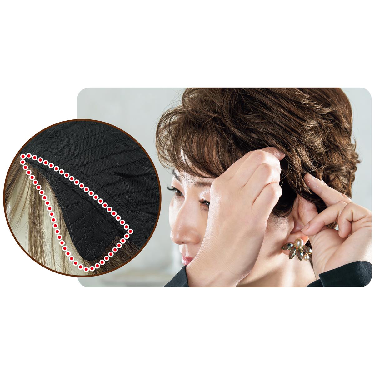 ランダムカールで華やかな印象に!内側が伸縮性のある帽子形状だから手軽に着用でき、頭にフィット。ウィッグが初めての方でも簡単。医療用にも。もみあげ部分は出し入れ可能!内側にたためばメガネやマスクの着用を邪魔せず、耳にかけても自然。ーこだわりPOINTーピンなしで着用でき、優しい手触り。アジャスターで調節可能!人工地肌付きで自然なつむじ。専用ブラシ付き ※色が変更になる場合があります。