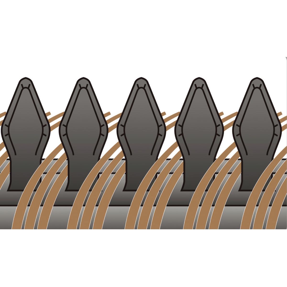 2.特殊ピンで細い毛もしっかり持ち上げる…「ダイヤ型ラバーピン」と「2種類のナイロンピン」を搭載。細い毛までしっかりキャッチ。