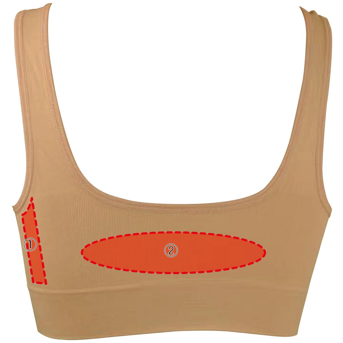 一体型スマートコネクティングパッド アンダー脇をカットし、下部のクッションをサイドまで設けることでバストをぐっと持ち上げます。