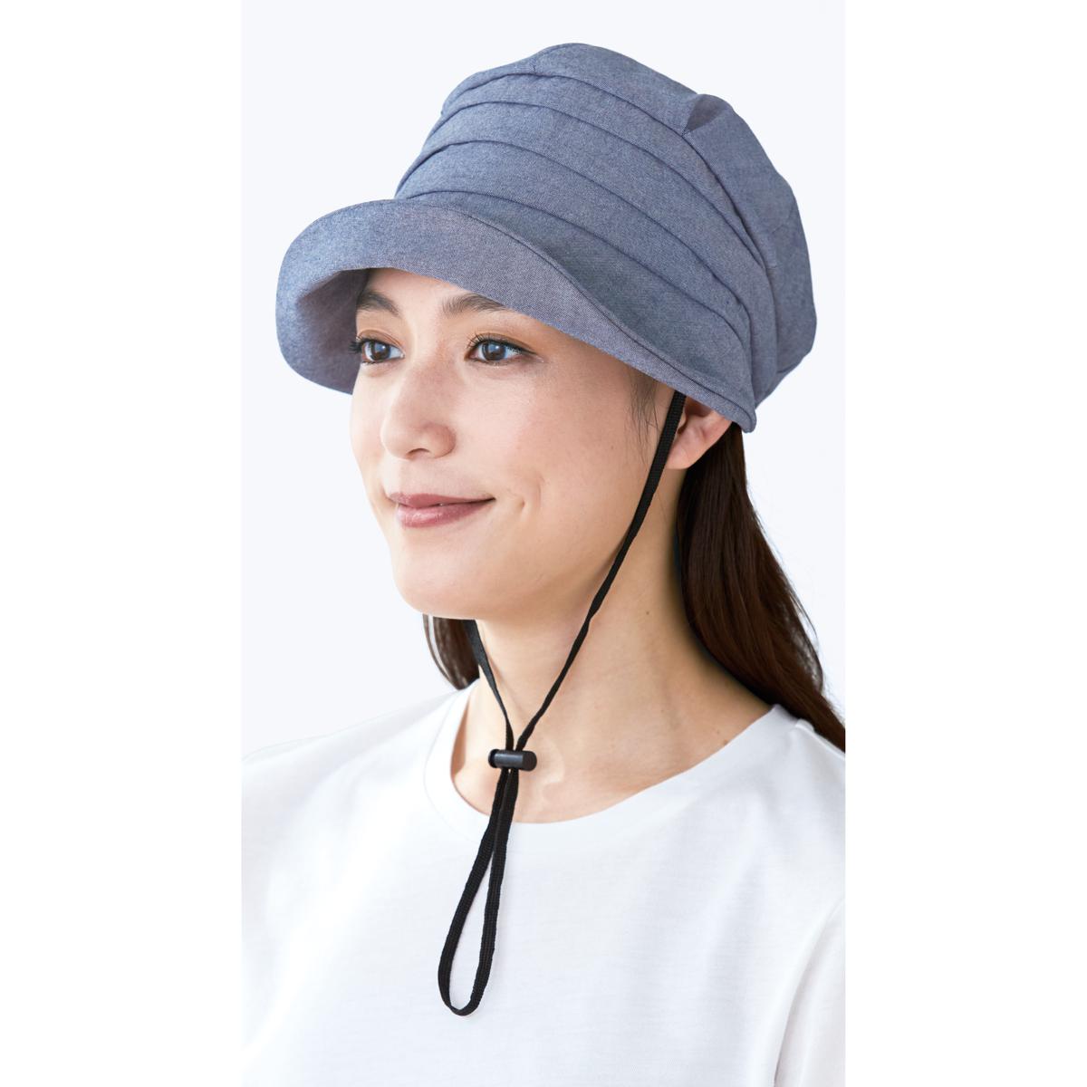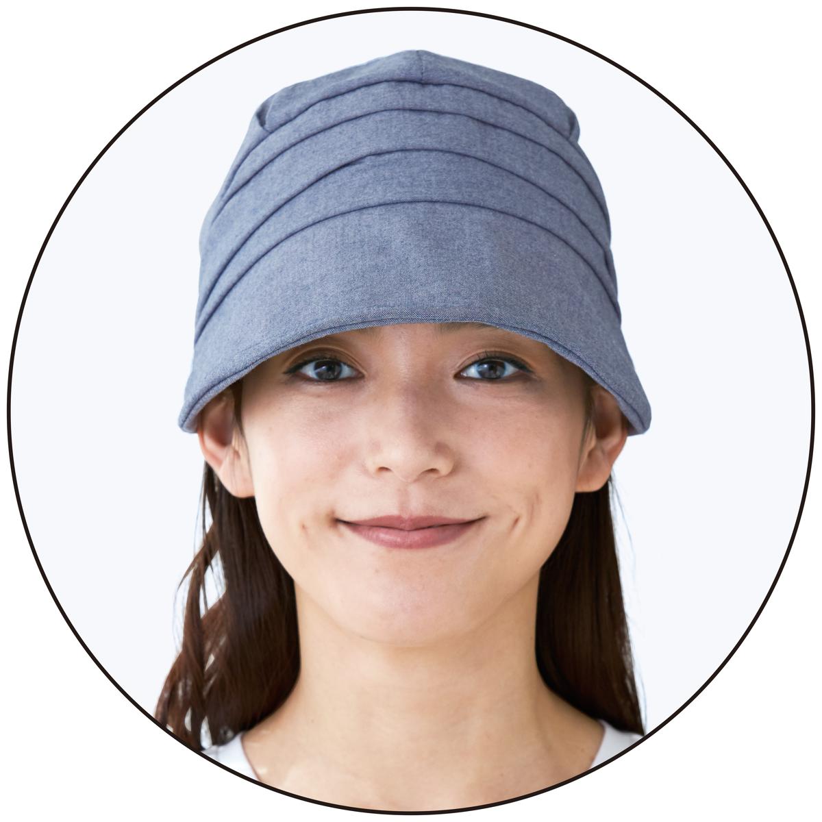 約50gとまるでかぶっていないような軽さで、夏でも快適なかぶり心地。ーデザインー大きめのつばとすっぽりかぶれるデザインで小顔見せ。すっぴん隠しにも。ー素材特徴ー軽く柔らかで丈夫なダンガリー生地を使用。内側(※1)はメッシュ生地でムレにくい。