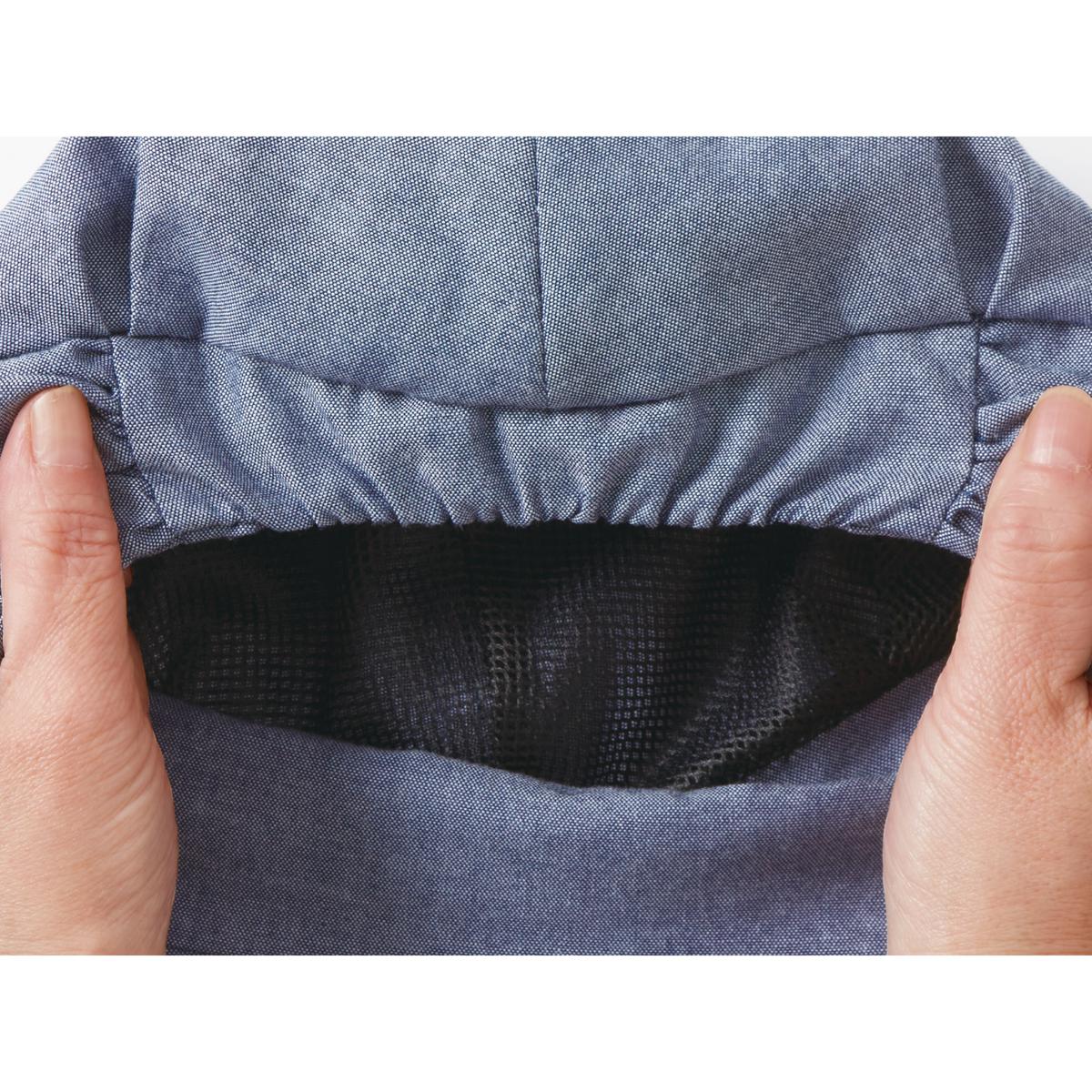 内側(※1)はメッシュ生地でムレにくい ※1頭にかぶる部分の内側