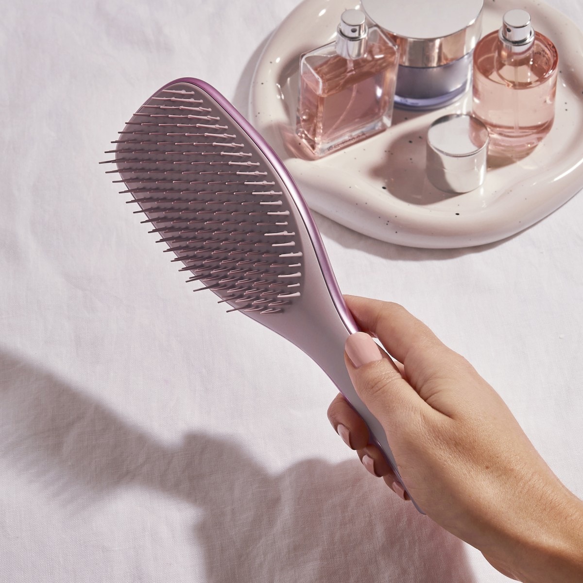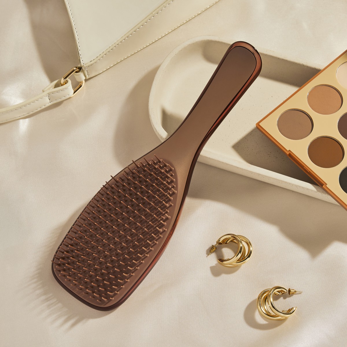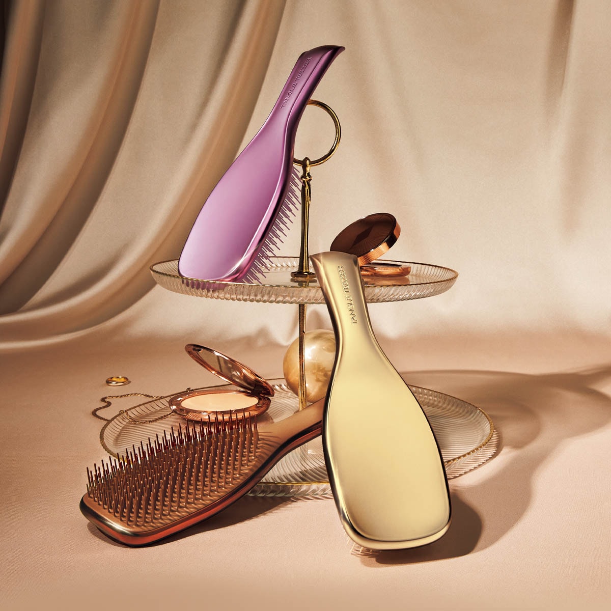 世界中で愛される「魔法のブラシ®」これ1本でサラ艶髪へ。(時計回りに)A(スモーキーピンク)、シャンパンゴールド、B(チョコレートブロンズ)