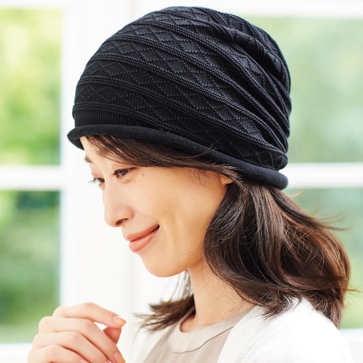 サッとかぶって簡単キレイ!気になる薄毛や白髪、乱れ髪をおしゃれにカバー。ーこだわりPOINTー・縫い目がなくごわつかない…(株)島精機製作所が独自に開発したニット編み機による「ホールガーメント®」製法で、1本の編み糸から丸ごと1個のニット帽子を編み上げて作りました。・抗菌作用で臭いを抑制…天然有機系デオドラント加工「ロンフレッシュ®」を使用。臭いの原因となる繊維上の常在菌が繁殖するのを抑えます。※「ホールガーメント®」は(株)島精機製作所の登録商標です。