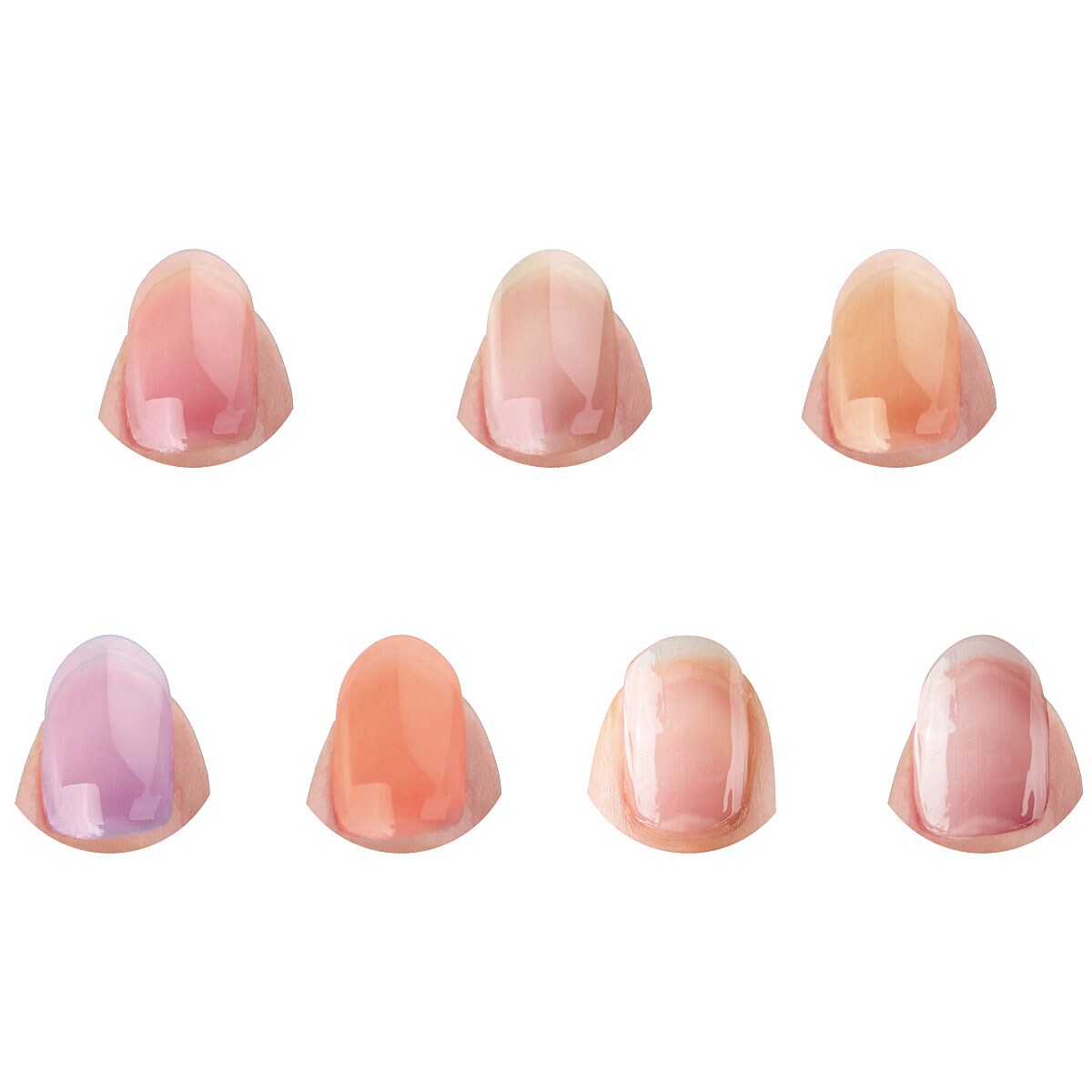 (上段:左から)Aほんのりピンク、Bクリア、Cほんのりベージュ(下段:左から)Dラベンダー、Eサーモンピンク、Hピンクベージュ、Iほんのりローズ