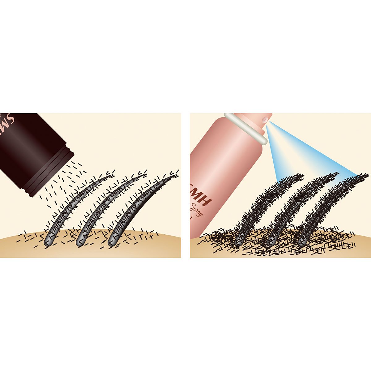 特殊加工された細かな繊維が静電気により 地毛に付着。自分の髪が増えたように見え、自然にボリュームアップ!繊維なので色移りの心配もありません。ヘアスプレーで雨・風・汗にも強く!【スーパーミリオンヘアー】特殊加工された人工毛(約0.3~0.5mmに裁断した繊維)で、ふりかけると静電気により髪に付着し、気になる薄毛をカバーします。【スーパーミリオンヘアスプレー】スプレータイプ(無香料)で、ふんわりとスタイルをキープし、スーパーミリオンヘアーを雨・風・汗から守ります。