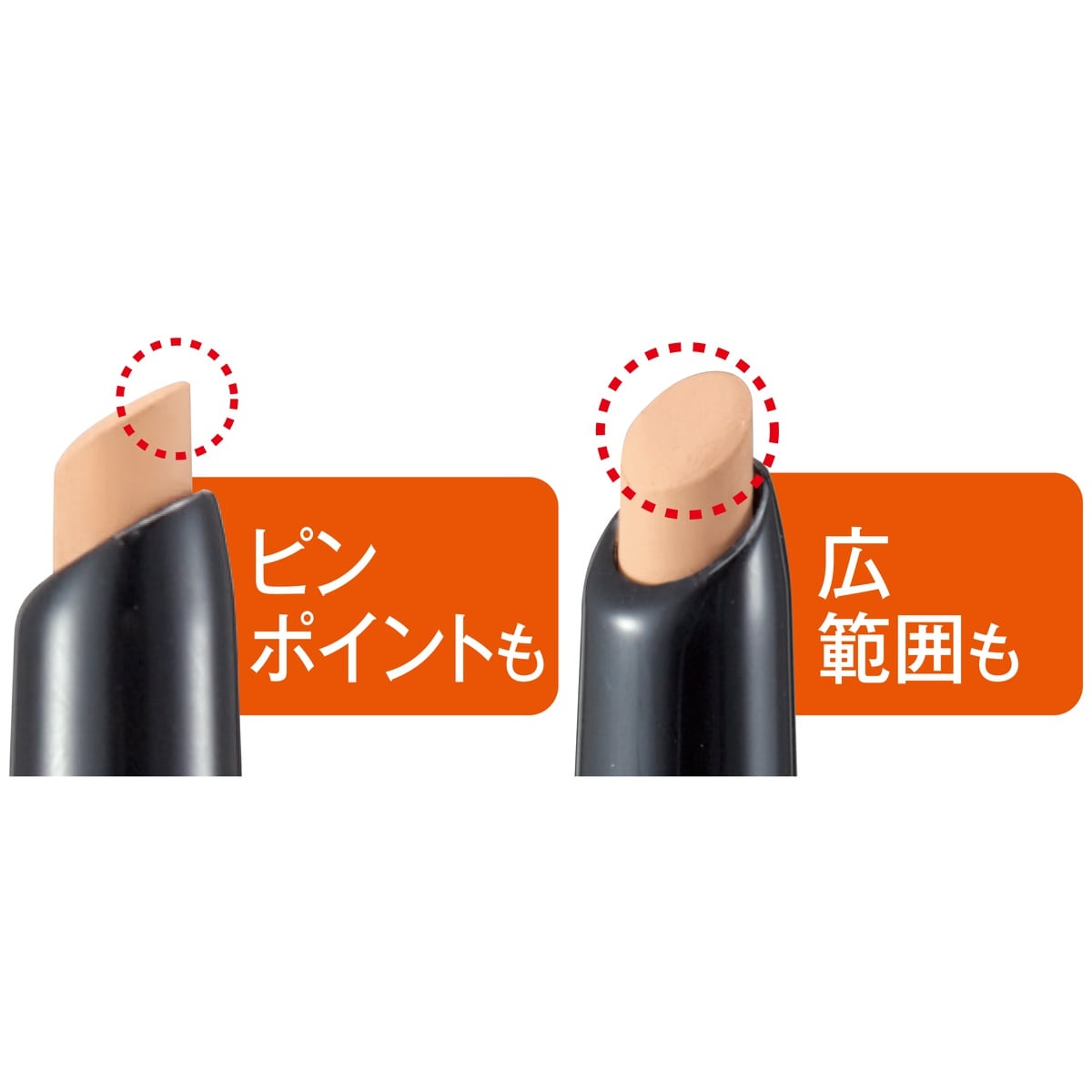 ななめカット芯だから どんなシミにも対応。使い方は簡単♪ピンポイントは芯先をチョン、広範囲は面を寝かせてカバー!