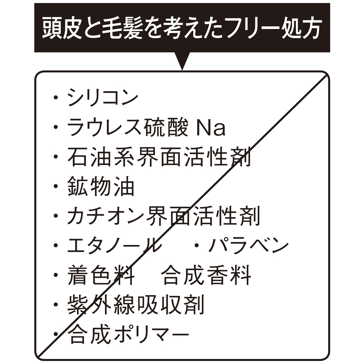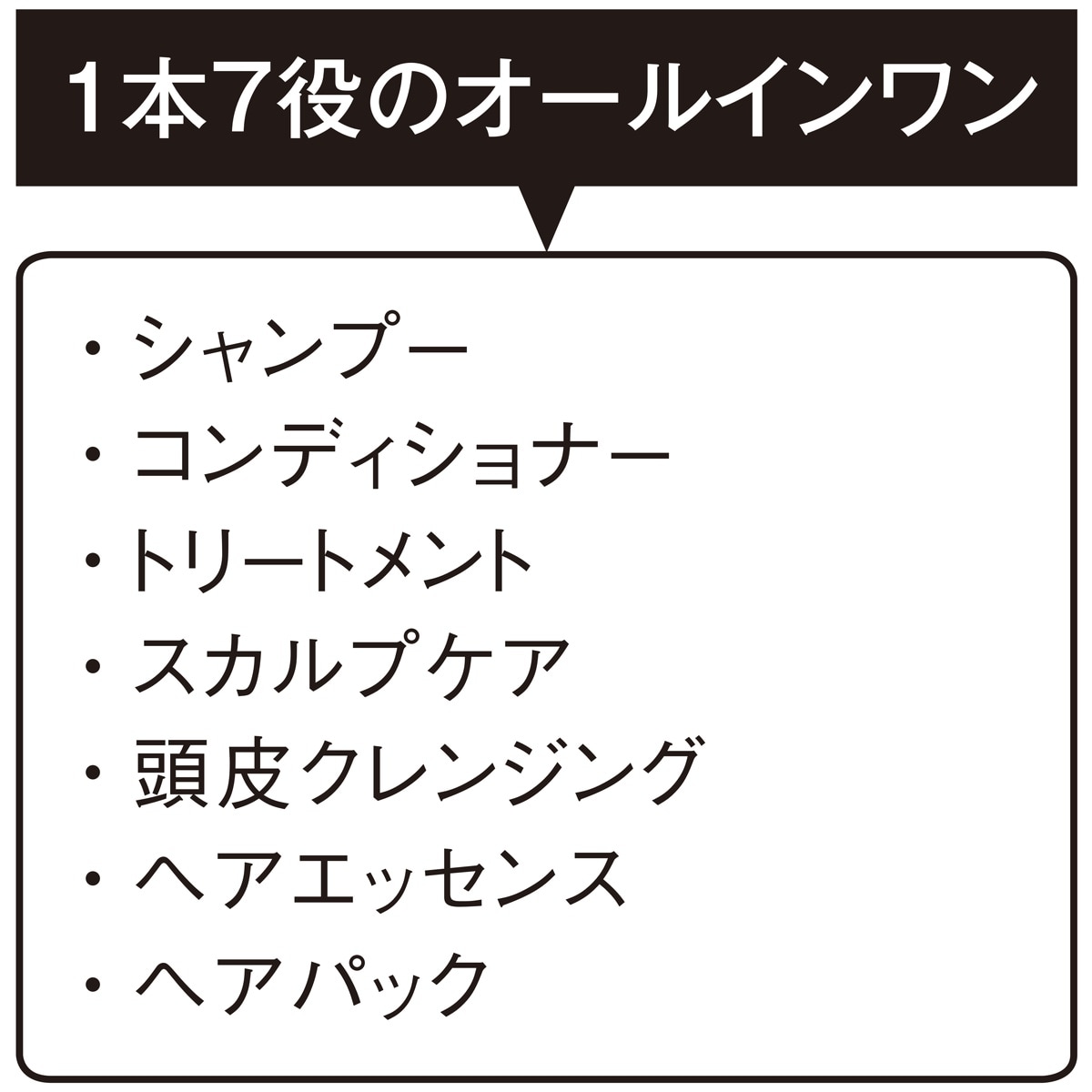 ボリュームダウンやかゆみ、ニオイなど大人の髪や頭皮のトラブルに着目。土台からアプローチするオールインワンシャンプー。これ1個で美髪&健やかな頭皮へと導きます。天然アロマ(精油)のリラックスフローラルの香り。【1個7役】シャンプー・コンディショナー・トリートメント・スカルプケア・頭皮クレンジング・ヘアエッセンス・ヘアパック【11の無添加】シリコン・ラウレス硫酸Na・石油系界面活性剤・カチオン界面活性剤・鉱物油・エタノール・パラベン・着色料・合成香料・紫外線吸収剤・合成ポリマー不使用。